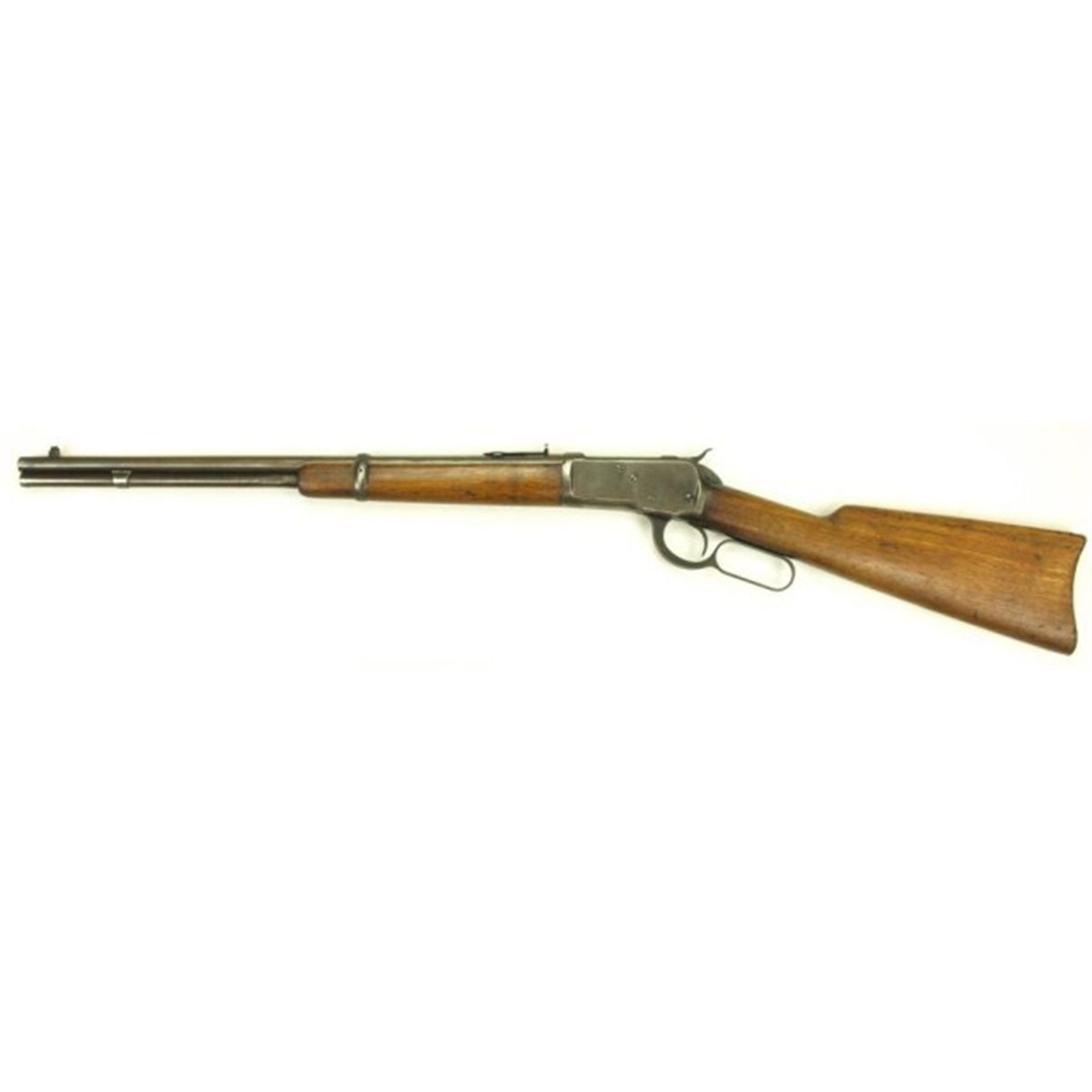 Winchester Model 1892 .32-20 SN438512 lever action carbine 20" barrel, full magazine and walnut stocks. All metal surfaces show gray to brown overall patina, pinned front sight with Marbles rear sight. Very good action with good bore. FFL required.