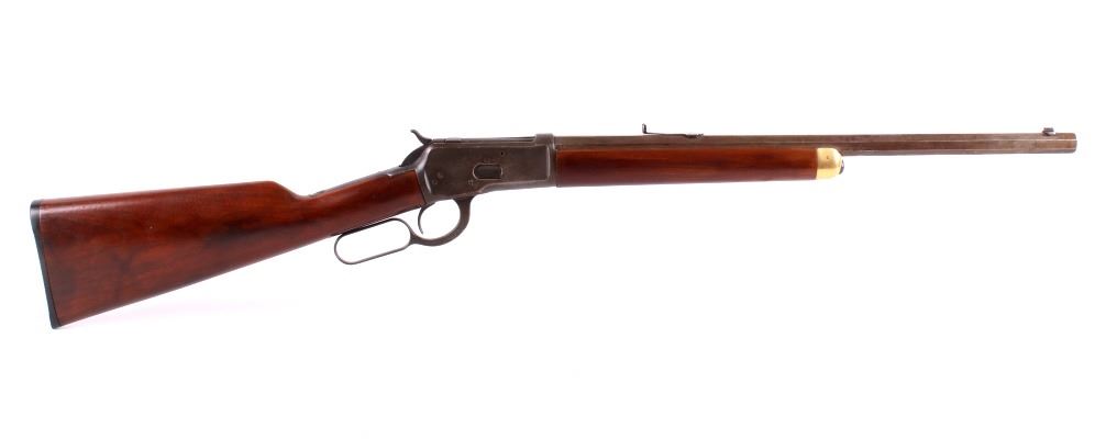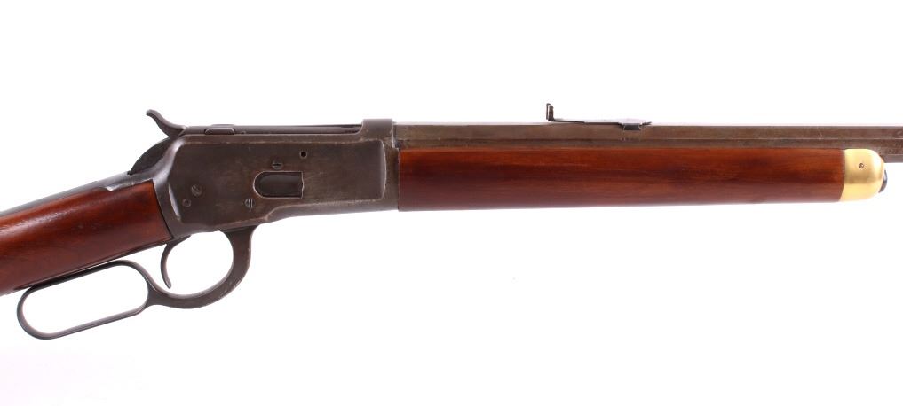This lot features a great example of a Winchester Model 1892 lever action rifle chambered in the respected .32 W.C.F. (Winchester Center Fire) caliber. This rifle was manufactured in 1899. The rifle features a 20" round octagonal barrel, wonderful walnut stocks, blue'd finish, and fixed sights. The Winchester Model 1892 was a lever-action repeating rifle designed by John Browning as a smaller, lighter version of his large-frame Model 1886, and which replaced the Model 1873 as the company's lever-action for pistol-caliber rounds. When asked by Winchester to design an improved lever action to compete with a recent Marlin offering, John Browning said he would have the prototype completed in under a month or it would be free. Within 2 weeks, Browning had a functioning prototype of the 92. Caliber's for the rifle vary and some are custom-chambered. The original rounds were the .32-20, .38-40, and .44-40 Winchester centerfire rounds, followed in 1895 by the new .25-20. A few Model 92s chambered for .218 Bee were produced in 1936-38. Rifles in .44-40 proved to be most popular, far outstripping sales of the other chamberings. This rifle is in good condition, with some handling and wear from use. The top of the barrel is marked, "WINCHESTER REPEATING ARMS NEW HAVEN CONN. U.S.A - KING'S IMPROVEMENT PATENTED MARCH 29. 1866. OCTOBER 16. 1860." The barrel and frame show the correct Winchester proof marks. The rifle tang is marked, "Model 1892 - Winchester - Pat. Oct. 14. 1884". Serial Number: 113486. This is a Curio & Relic firearm. FFL transfer or NICS background check required.