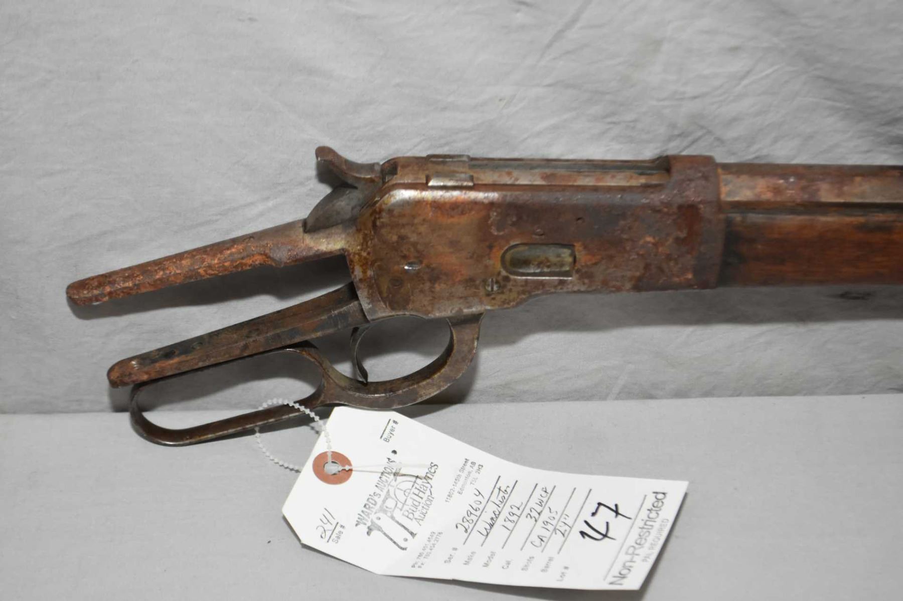 Winchester Model 1892 .32 WCF Cal Lever Action Rifle w/ 24" octagon bbl [ rusted finish, mag tube appears shortened, missing rear sight, butt stock, hammer spring, etc, appears to have all bolt parts, loading gate, lever, etc., Circa 1905 ] Ser # 289604