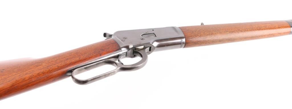 Lever action rifle manufactured circa 1910, re-finished and re-chambered to 357 Magnum. The metal surfaces retain approximately 98% of quality re-finish. Markings are sharp. The original 24" octagonal barrel is marked ".32 W.C.F.". The smooth wood stocks have been varnished. The butt stock ends with a smooth steel crescent butt plate. The bore is excellent and the action is crisp. NRA Condition-Near Excellent/Refinished, C&R Firearm.
