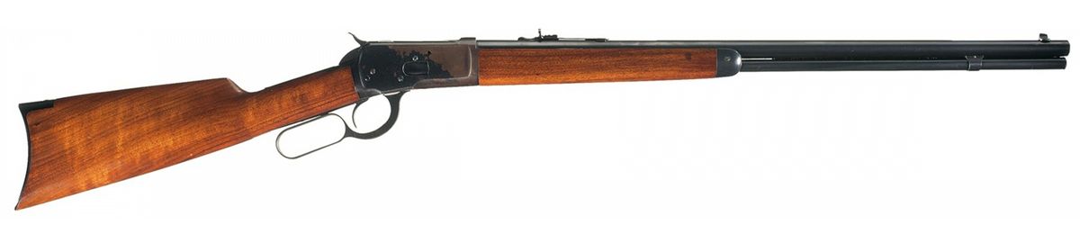 Manufactured in 1919. The left side of the barrel is marked with the two line address/patent date ahead of the rear sight and "32 W.C.F." at the breech. The Winchester oval proof is marked on top of the barrel and receiver at the breech. Three line upper tang marking and the serial number on the bottom of the receiver. Dovetailed blade front and adjustable semi-buckhorn sporting rear sights, full magazine tube, blue finish and mounted with a smooth walnut forearm and straight grip stock with a crescent buttplate.