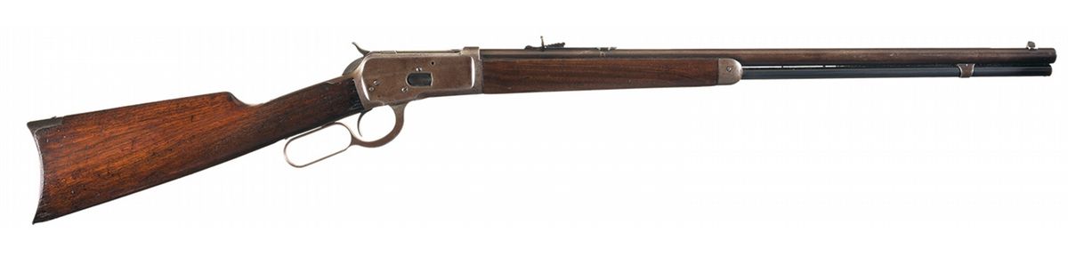 Manufactured in 1911. Dovetail front sight and adjustable buck horn rear sights with the two-line address and patent marking ahead of the rear sight and the Winchester oval proof followed by "32 W.C.F." at the breech. The Winchester oval proof is also marked on top of the receiver at the breech, the upper tang has the three line Model 1892 marking and the serial number is marked on the bottom of the receiver. Blue finish with casehardened hammer, lever, forend cap and buttplate. Full length magazine tube, and mounted with a smooth walnut forearm and straight grip stock with a crescent buttplate.