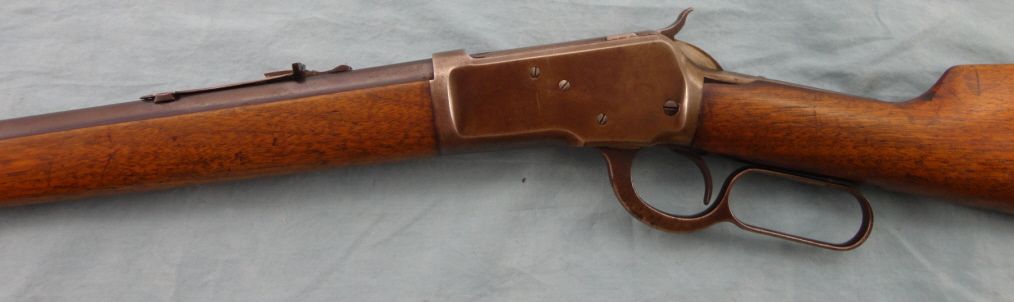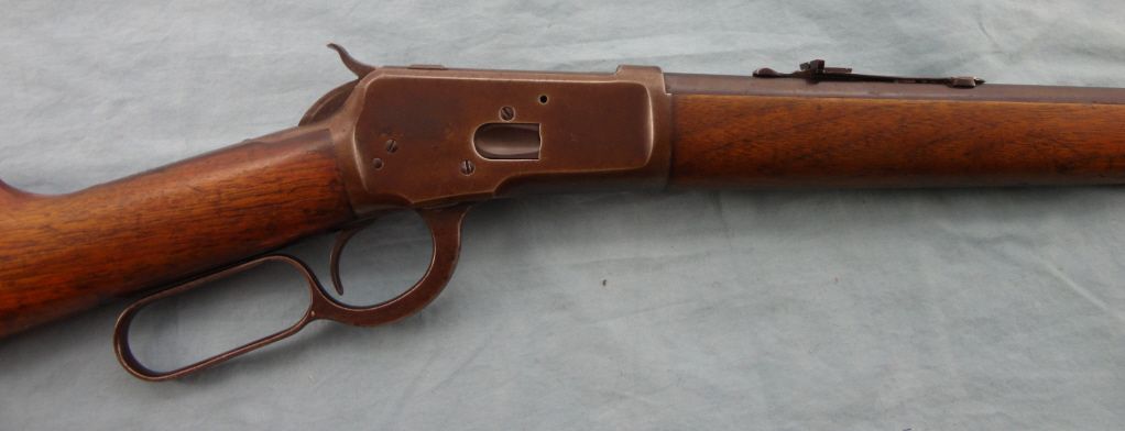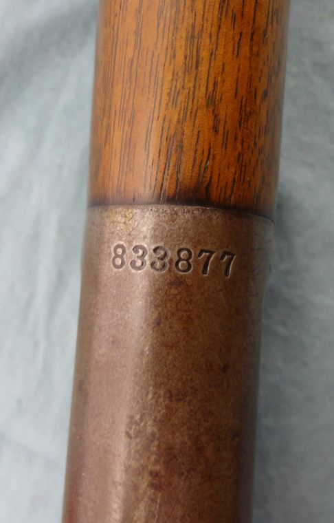 #833,877; 25-20. 24" round. bbl. w/good bore & crisp action. Blued finish fading to brown on receiver. Stock is solid w/usual dents & scratches.