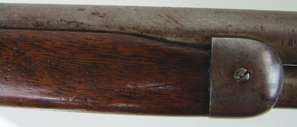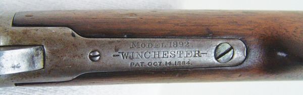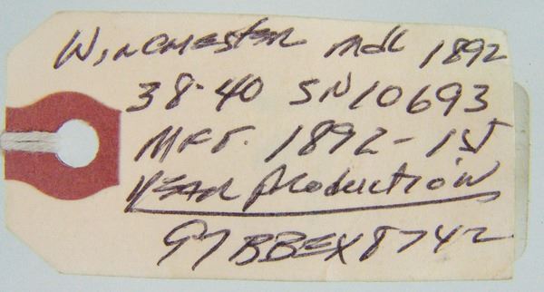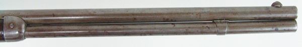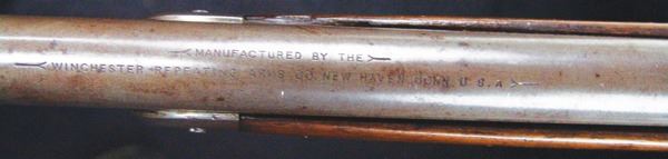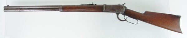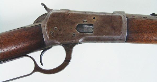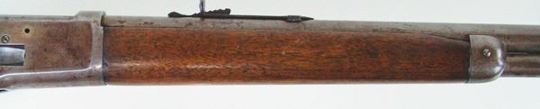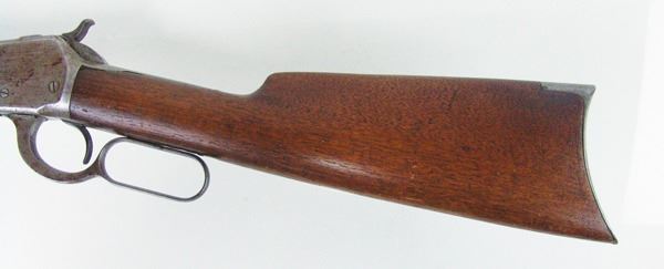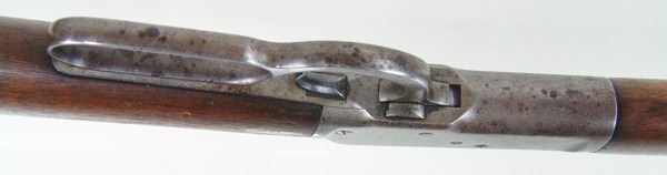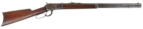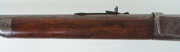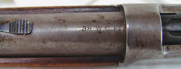 Antique, lever action .38-40 caliber rifle with round, 24" barrel, crescent butt plate, steel fore end cap, and adjustable rear buckhorn sights. Good condition. S/N 10643.Late 1800s42"