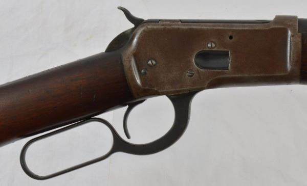 * Serial no. 936215 .25-20 20" barrel retaining 80-85% of factory blue, traces of finish on frame over a brown plum patina.