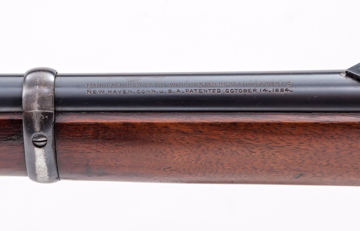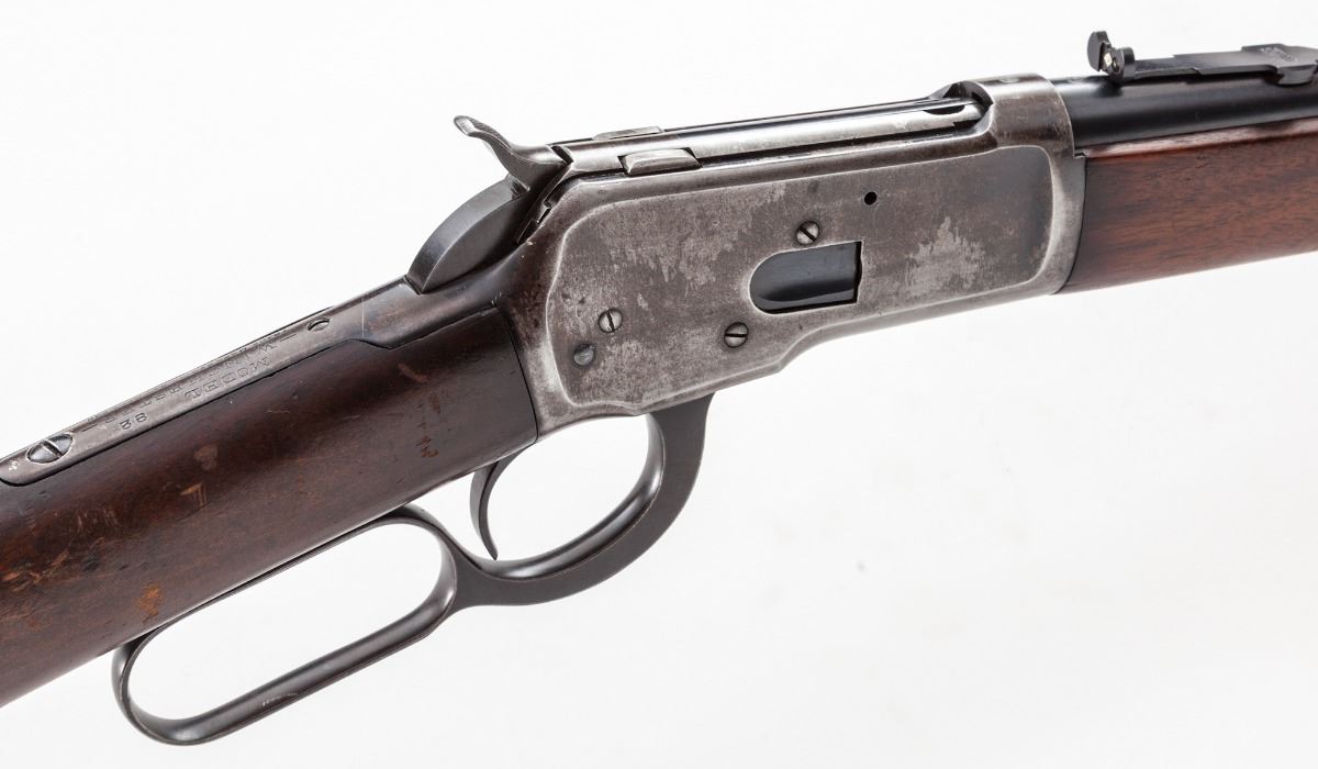 Winchester Model 1892 Saddlering Carbine, #914488, .25-20 cal., 20'' barrel, blue finish, gumwood stock and forend, with Marbles front and rear sights. Mfg'd 1922. Condition is very good. Barrel and mag tube retain approx. 92%+ original blue; frame shows 20%. Gumwood stock with scuffs and scratches and oil darkening, predominantly at wrist area. Forend is about fine. Action is good, bore is bright. Est.: $600-$800. (C&R)