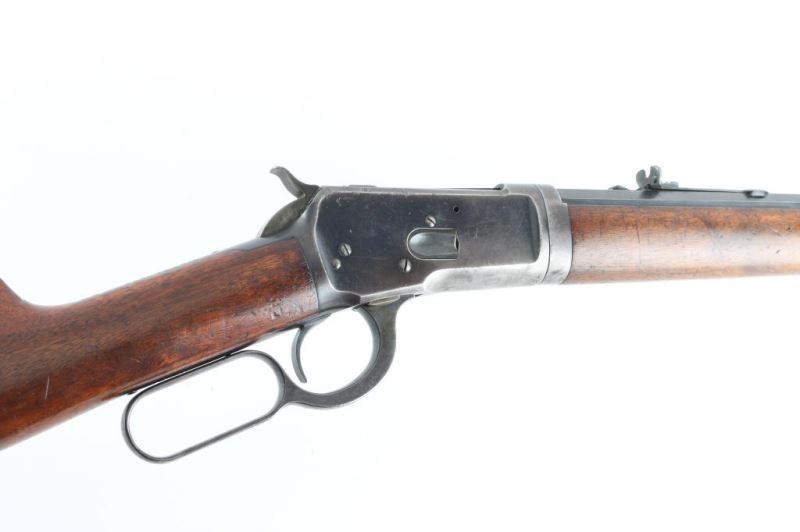 'Special Order' take down lever action rifle manufactured circa 1907. Features blued finish, smooth walnut forend & straight wristed stock, 24" half round half octagon barrel, half length magazine tube, dovetailed blade front sight, semi buckhorn rear sporting sight, shotgun butt with factory composition buttplate. Bore is good to very good bright condition with minor frosting. Retains 40% blue, remainder of finish has turned brown or has thinned from handling, with edge losses and bare metal on bottom and forward portions of receiver. Wood is good condition, varnished, with dents & scratches. Buttplate is good or better. Markings are sharp and even. Condition is NRA Good++ *** C&R Firearm *** [From the Jim Sigmon Collection]