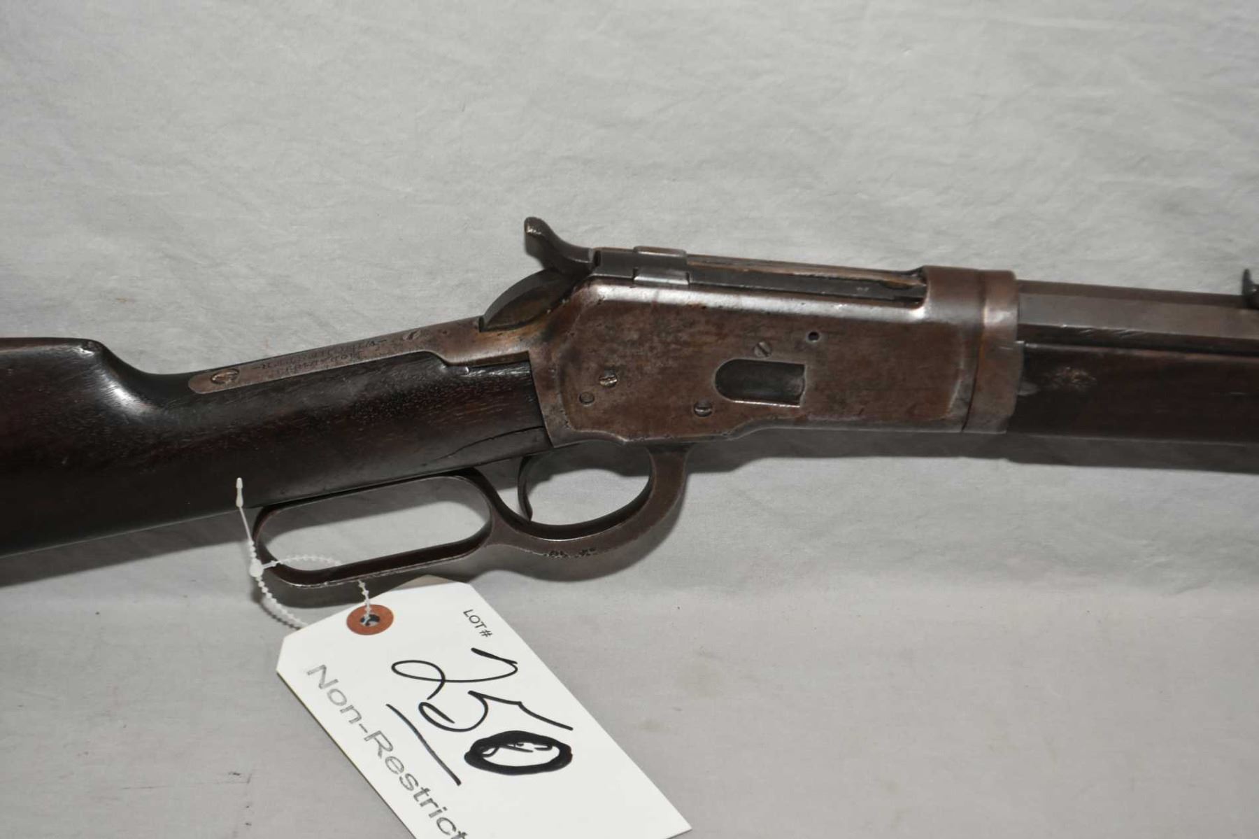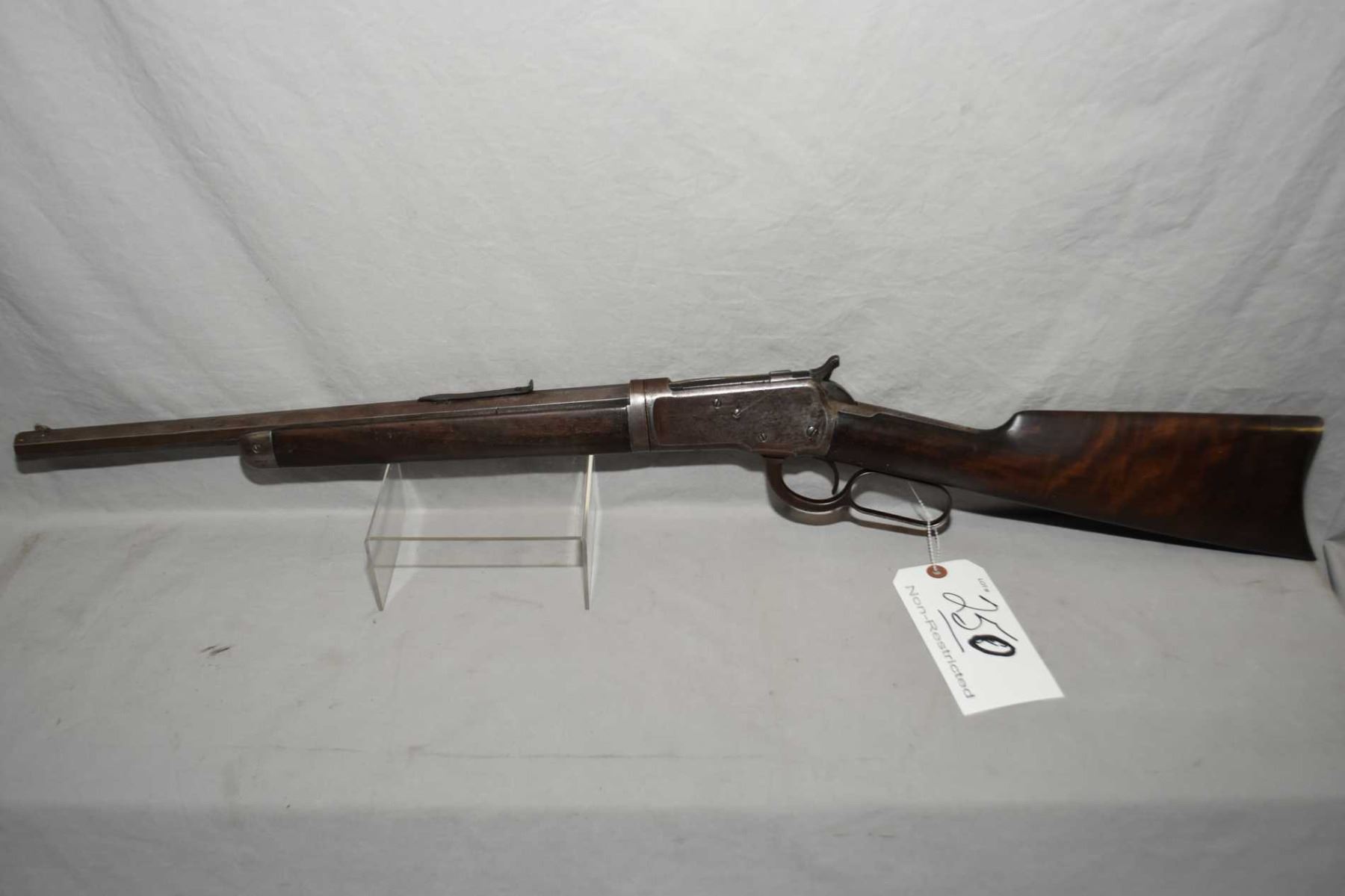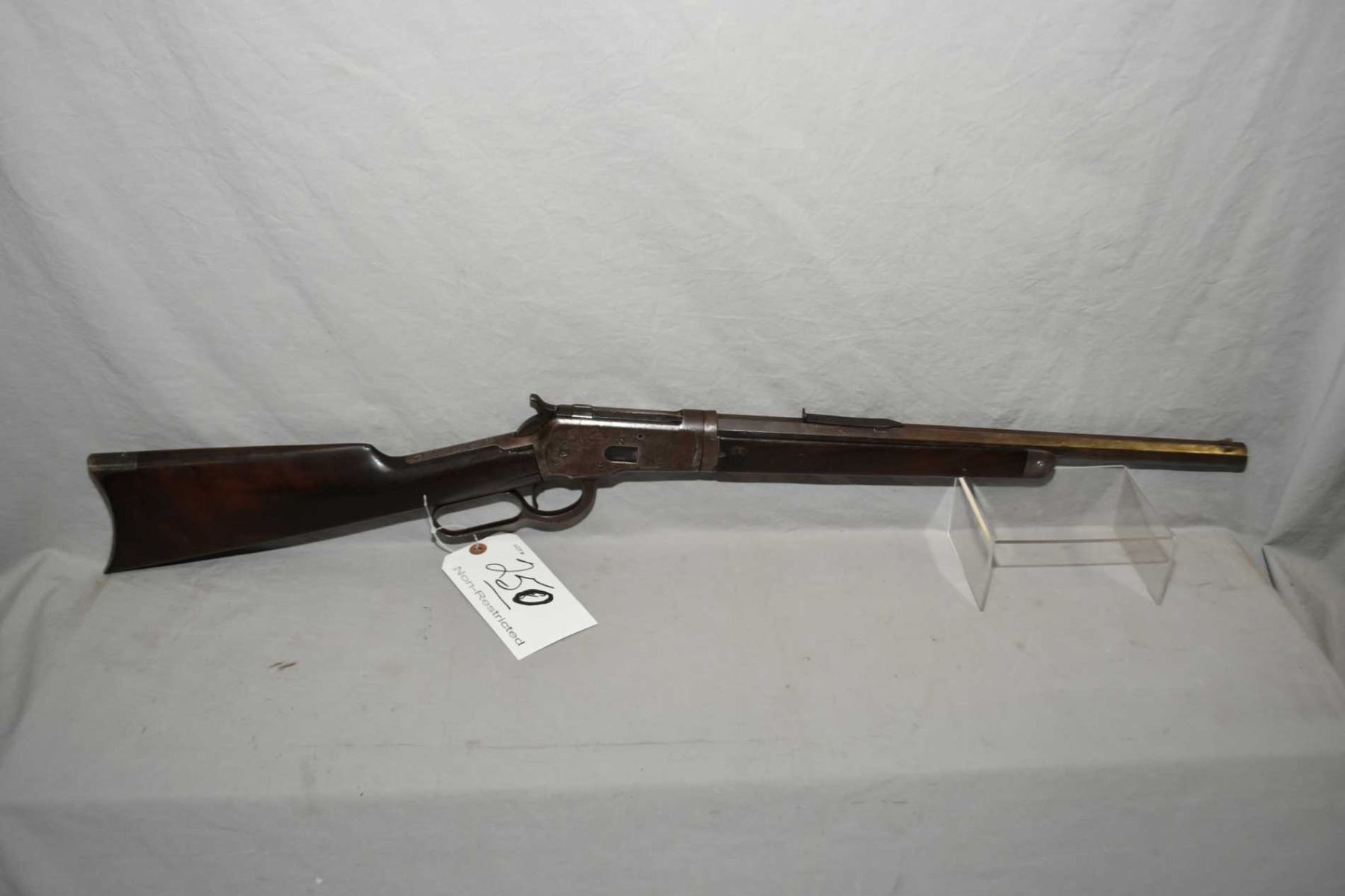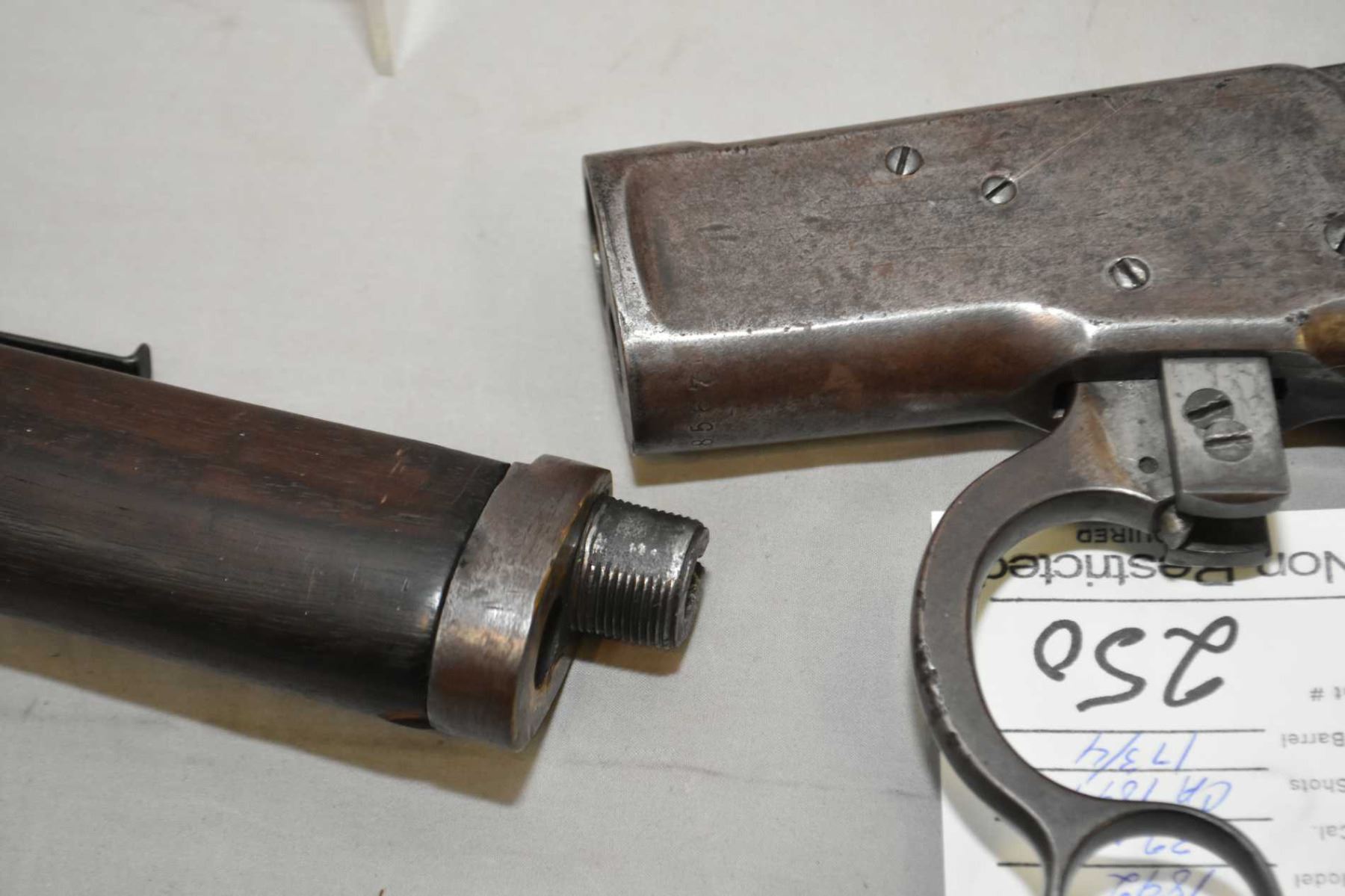 Winchester Model 1892 Take Down .32 WCF Cal Lever Action Rifle w/ barrel cut to approx. 17 3/4" [ mottled blued finish, barrel sights, missing the take down mag tube, forend has couple of chips, but appears fair, butt stock has marks and crack and chip on right side, metal crescent butt plate, Note; barrel and mag tube should be replaced, Circa 1894 ] Ser # 58567