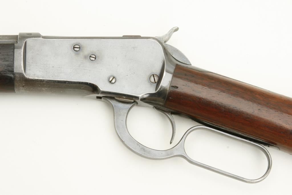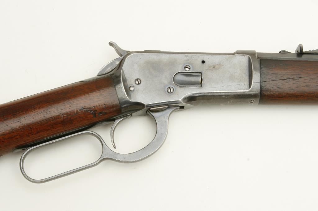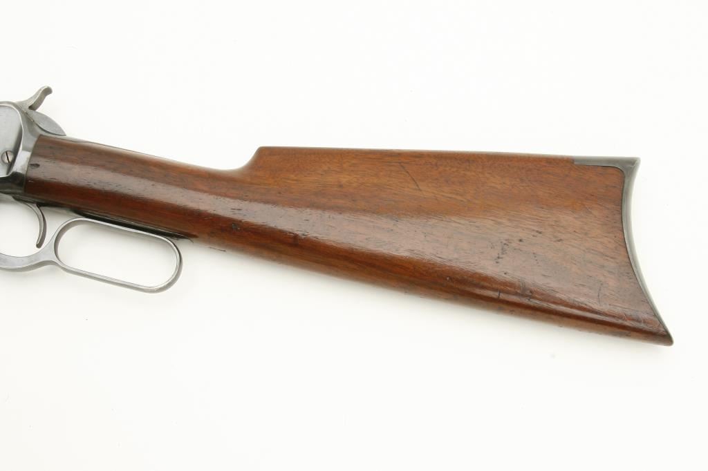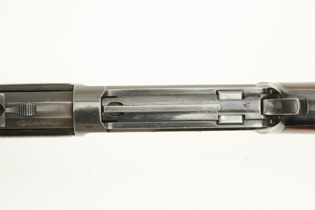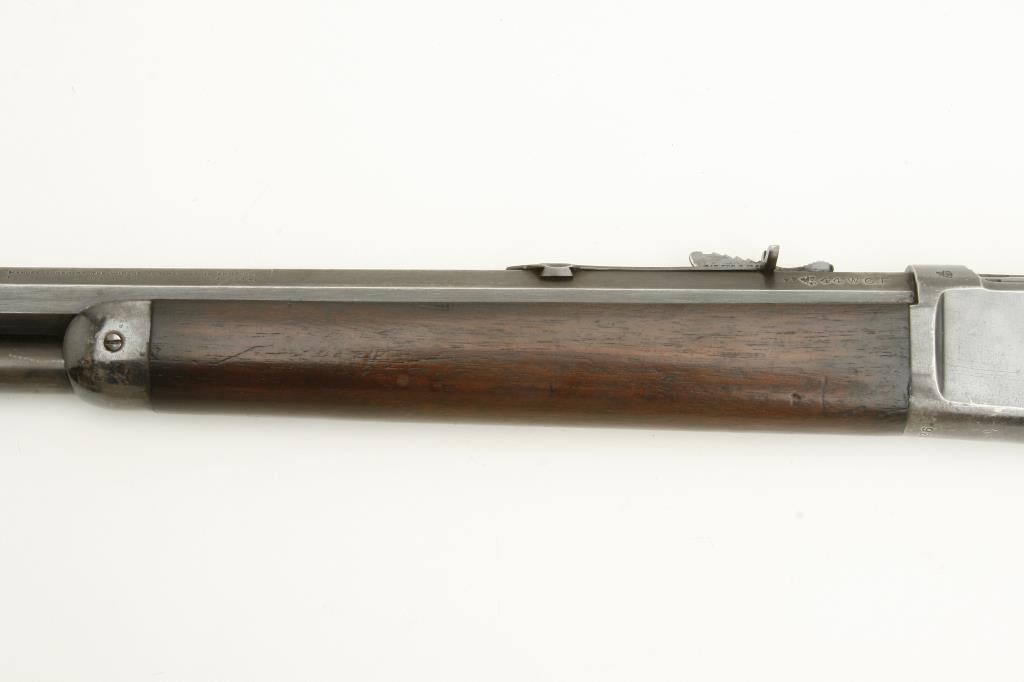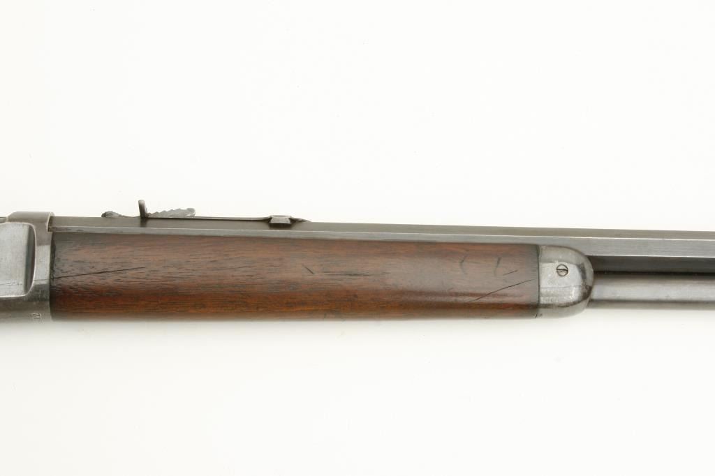 caliber with 20” octagon barrel, full magazine, crescent butt, serial number 715426. The rifle remains in very good plus to near fine original condition showing 80% to 90% bright original blue drifting at the high points and edges. The markings are sharp and crisp. The stocks are very good plus to near fine with excellent wood to metal fit. A few minor dings, mars and slight scratches with just minor normal aging. The action is crisp and the bore is bright and near excellent. The rifle shows small standing lion proofs on the frame, barrel and bolt. (C&R) Est.: $6000-$12,000