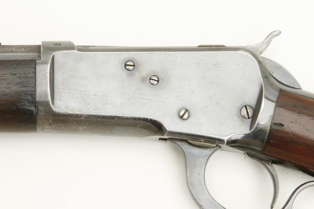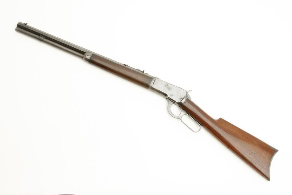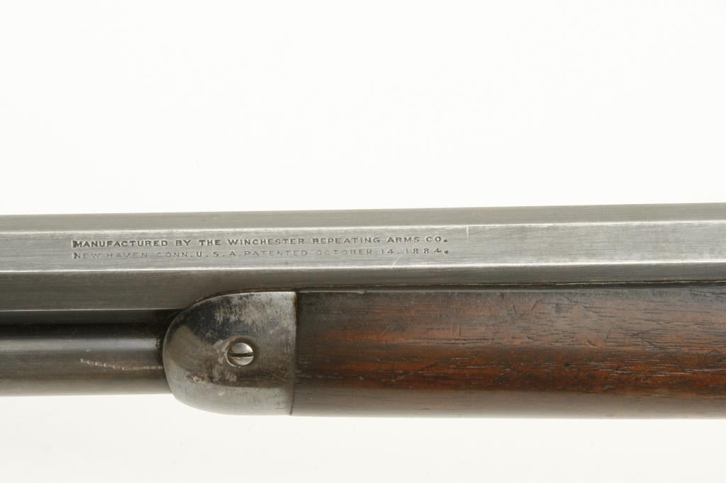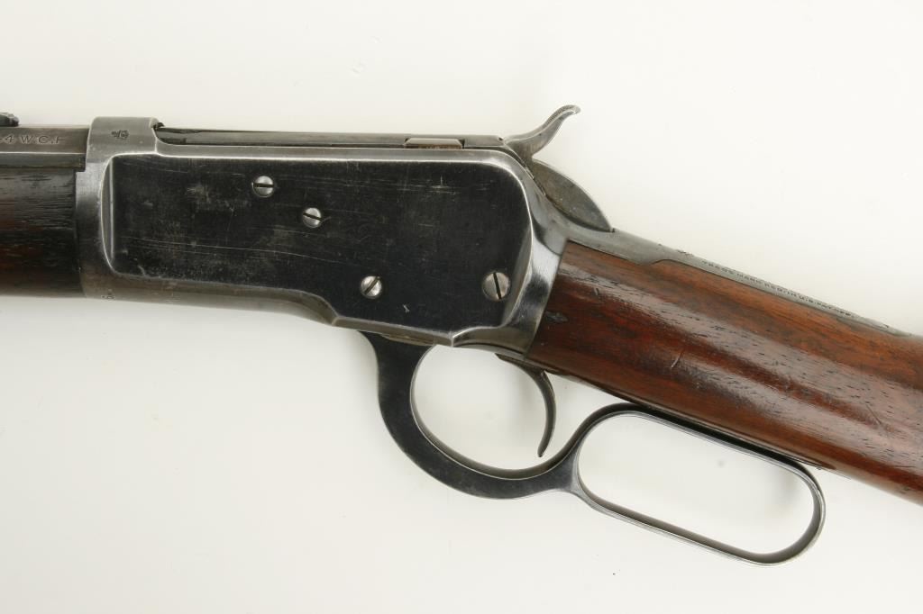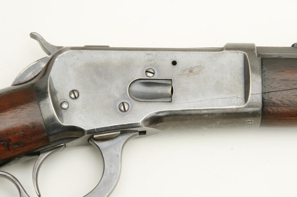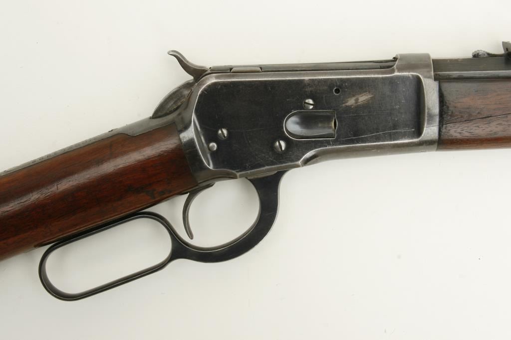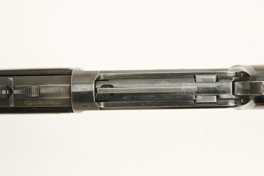 caliber with 20” octagon barrel, full magazine, crescent butt, serial number 715426. The rifle remains in very good plus to near fine original condition showing 80% to 90% bright original blue drifting at the high points and edges. The markings are sharp and crisp. The stocks are very good plus to near fine with excellent wood to metal fit. A few minor dings, mars and slight scratches with just minor normal aging. The action is crisp and the bore is bright and near excellent. The rifle shows small standing lion proofs on the frame, barrel and bolt. (C&R) Est.: $6000-$12,000