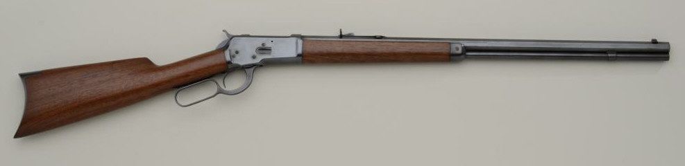 Winchester Model 1892 lever action rifle, .25-20 W.C.F. cal., 24” octagon barrel, re-blued finish, wood stocks, #147403. This gun is in overall good to very good condition showing the majority of a quality re-bluefinish, good bore, crisp action, good markings, very good wood stock with a quality re-finish. Est.: $700-$1,400.