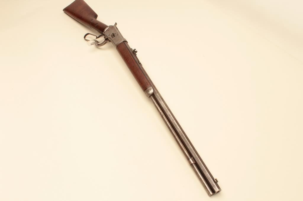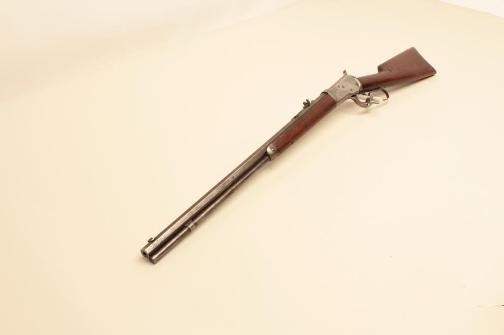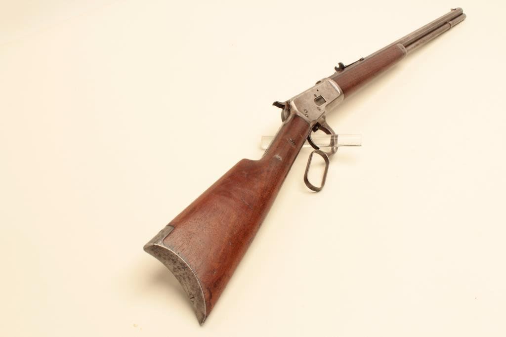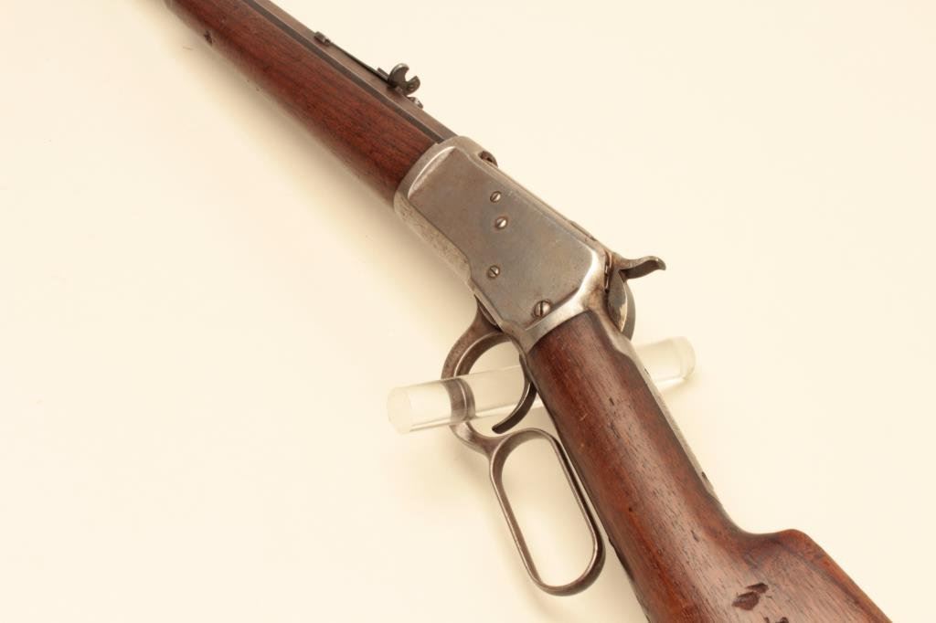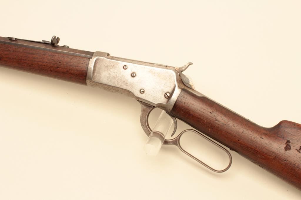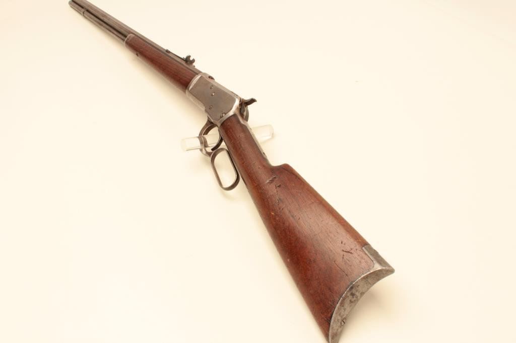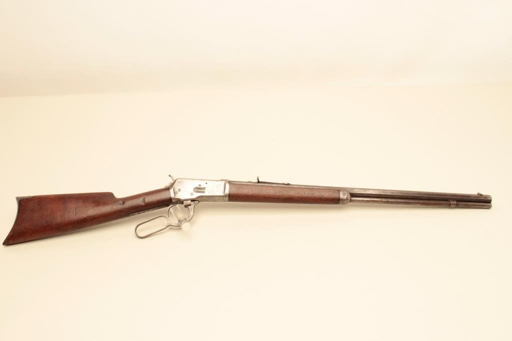 barrel, full magazine, crescent butt, S/N 137644, pre-’98; good overall; traces of blue; normal aging, good bore. (Antique). Est.: $800-$1,600.