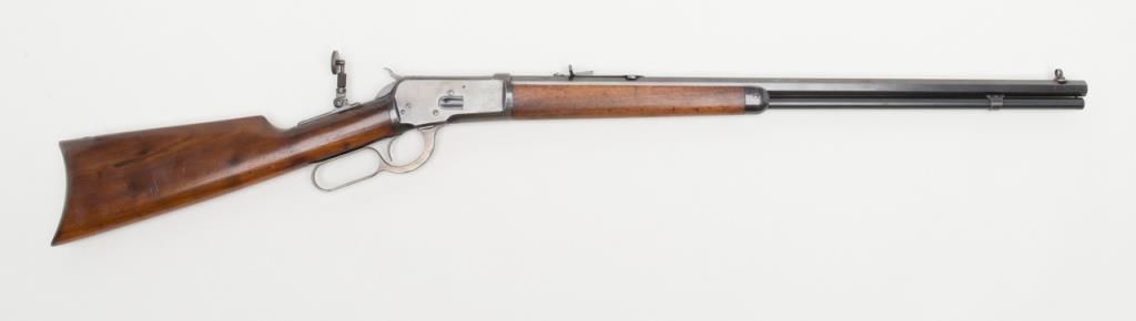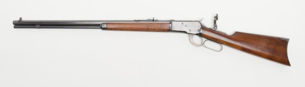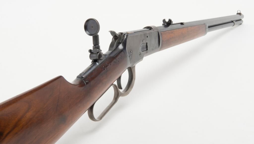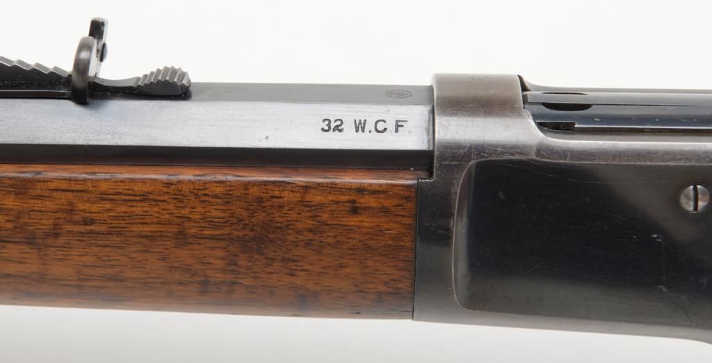 Winchester Model 1892 lever action rifle, .32 W.C.F. cal., 24” octagon barrel, Beech Combination type front sight, standard rear sight and adjustable tang peep sight, blue finish, wood stocks, #517208 in overall fine condition showingthe majority of its original finish, fine bore, crisp action, sharp markings and very good to near fine wood with some minor scattered old mars and scratches from storage. From the estate of Joe Kiser. (C&R). Est.: $2,500-$5,000.