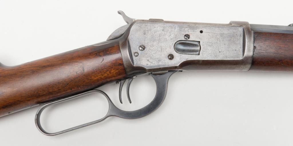 Winchester Model 1892 lever action rifle, .32 W.C.F. cal., 24” octagon barrel, double set triggers, Beech Combination front sight, wood stocks, #290213 with factory letter confirming caliber, type of barrel, set trigger, Beech frontsight with notations of receipt in warehouse on Oct. 6, 1905 and shipment from warehouse on Oct. 10, 1905. This gun is in overall fine condition showing the majority of its original finish, fine bore, crisp action, sharp markings and fine woodstocks showing some darkening of wood around the wrist area and scattered old mars and scratches on the butt stock from carry and storage. From the estate of Joe Kiser. (C&R). Est.: $2,000-$4,000.