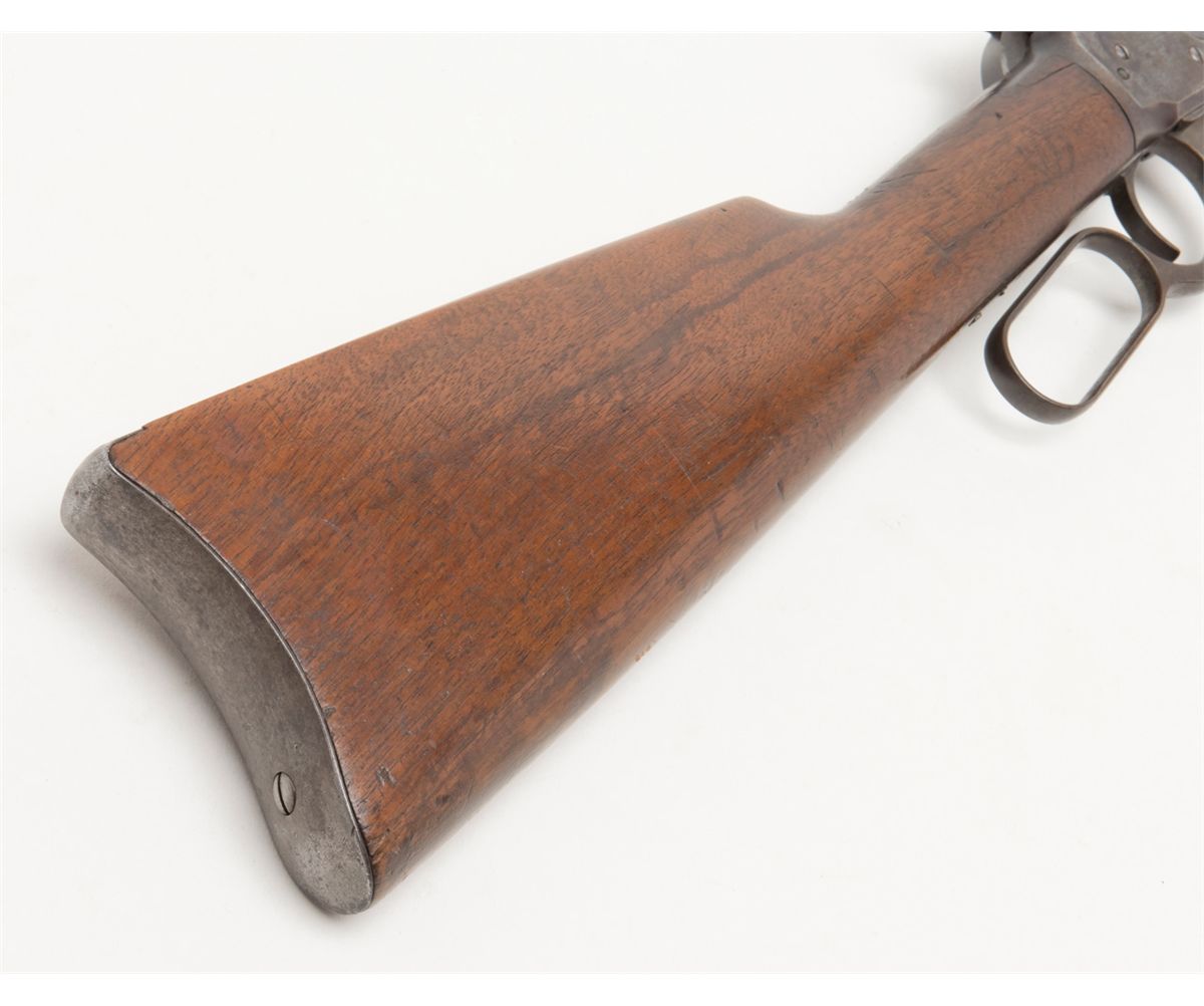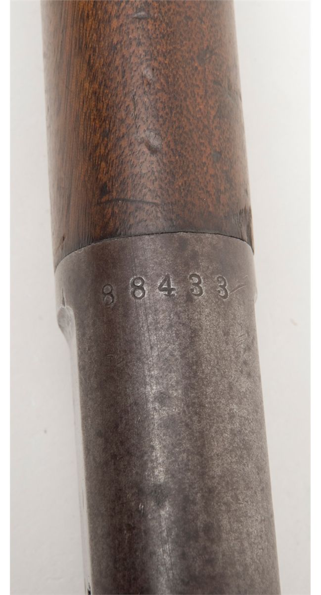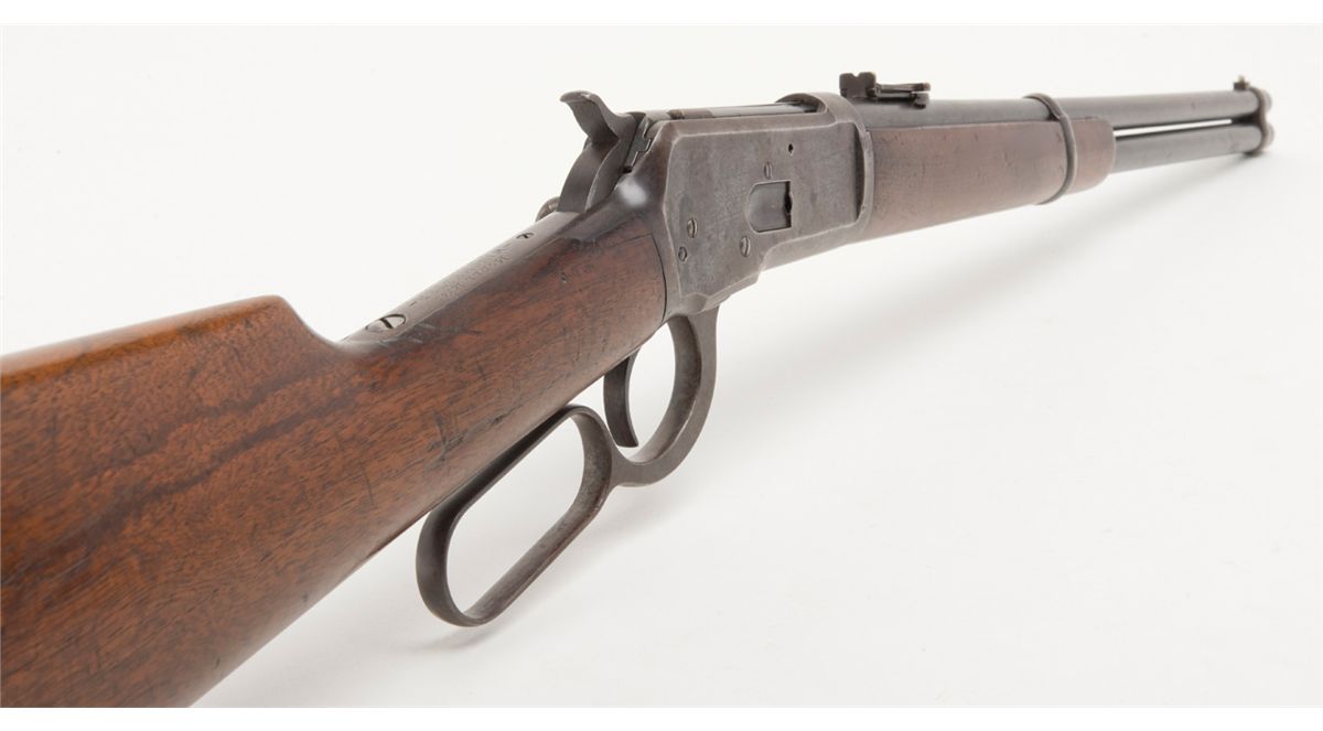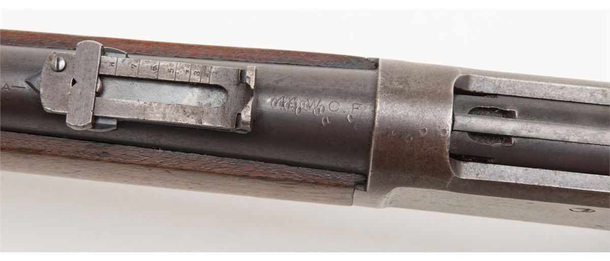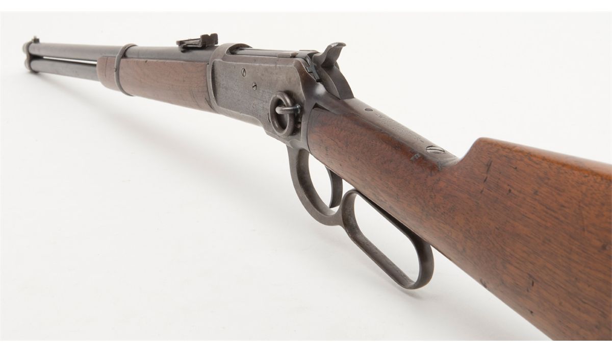 Winchester Model 1892 saddle ring carbine in .44-40 caliber, serial number 88433 for 1894 with documentation as having been used by outlaws Butch Cassidy and Harry Longabaugh aka the Sundance Kid during the climactic shootout in which bothoutlaws perished following their daring theft of the payroll from the Aramayo Mining Company payroll transport near Tupiza, Bolivia which was immortalized by the classic film showing the ferocious battle at the end of the movie. Thiscarbine retains 50%-70% original blue and is in very good original condition showing some minor scratches, mars and normal use. The stocks also are very good plus with some minor losses, light scratches and just normal aging. The markings aregood and the bore is good to very good. The documentation mentions this Winchester by serial number and the fact it was recovered by Captain Justa Concha of The Albaroa Special Force Cavalry Unit attached to the Bolivian Army. The documentsare from Concha's descendants and the a newspaper printed by the Bolivian Army and the provenance traces the Winchester from Nov. 7th, 1908 to modern times. See attachments on the website including copies of docs, photos, and more info.