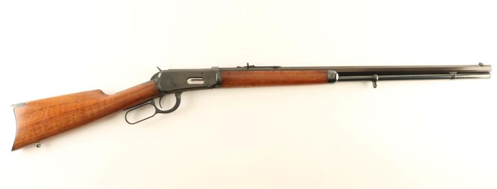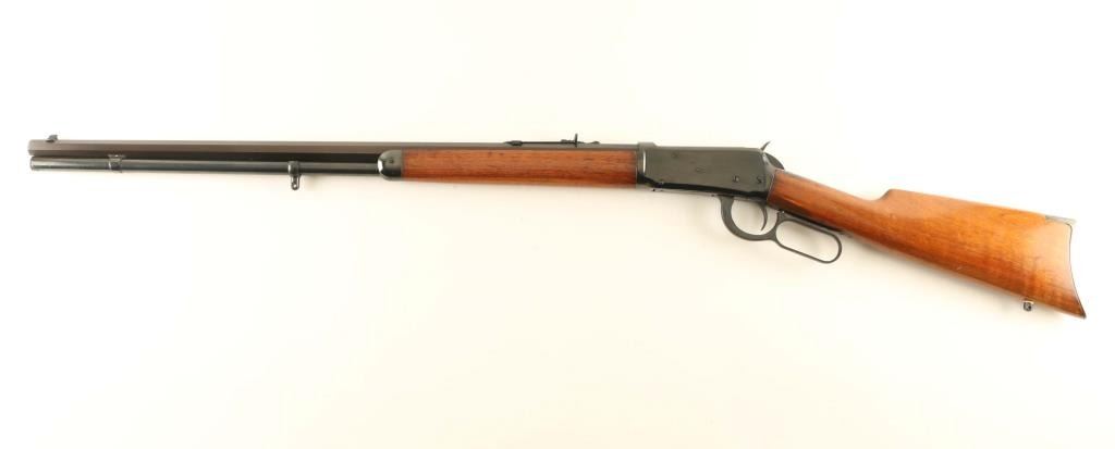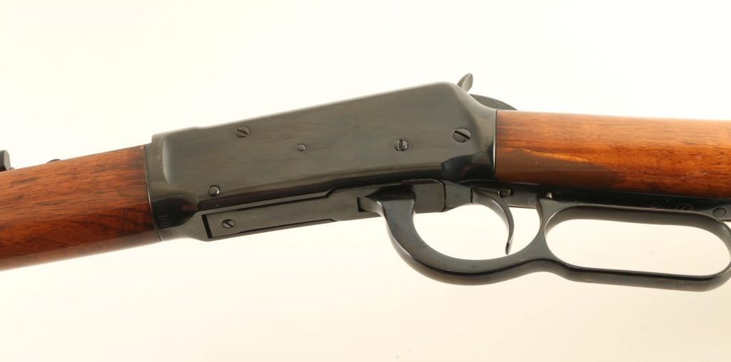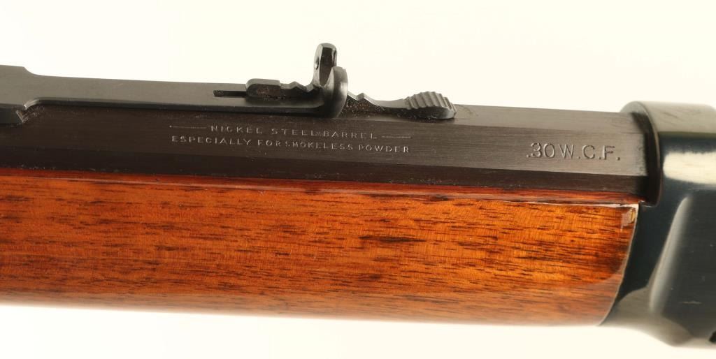 Finely restored vintage lever action repeating rifle chambered in .30-30 Winchester, manufactured in New Haven, CT circa 1913. Features a blued refinish, 26" octagonal barrel, full-length tube magazine with detachable swivel stud, dovetailed blade front sight with bead top & set screw, elevation adjustable semi-buckhorn rear sight, smooth trigger, knurled hammer spur, grip safety, steel receiver, nickel plated loading gate, smooth walnut forend with high gloss finish & metal cap and straight grip shoulder stock with installed swivel stud, crescent metal buttplate & 13 1/8" LOP. Rifle retains approximately 99% of its blued refinish showing minor wear, the barrel turned plum and some pin prick pitting under the finish on the finger lever & magazine tube. Action is crisp, the bore is fair and the refinished wood stocks are very good with expert repairs. Condition is NRA Very Good as restored. ***C&R Firearm***