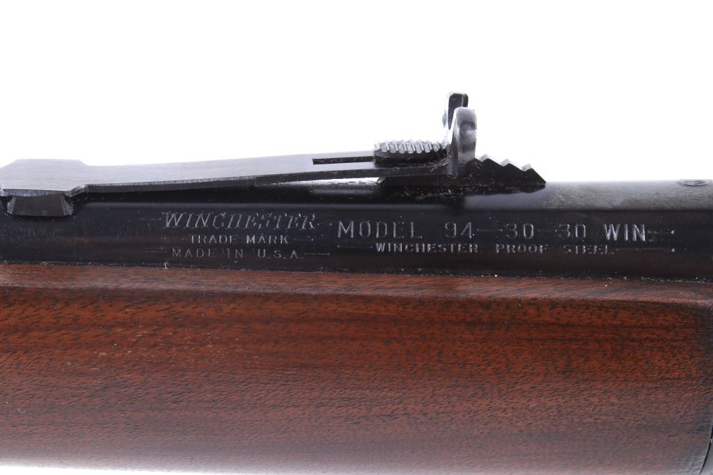 Included in this lot is a Winchester Model 1894 carbine, chambered in .30 Winchester Center Fire (.30-30 WCF). The John Browning designed Winchester 94 repeating carbine was popular far and wide, from Klondike gold seekers, Texas Rangers, cowboys, ranchers, big game hunters, and Mexican Revolutionaries alike. The famous design of this firearm stands the test of time, retaining a tight action, lock-up, and strong springs. The carbine utilizes a walnut butt-stock and fore-grip, showing a steel shotgun butt-plate, 20" round barrel with full tube magazine, original Winchester hooded front sight, and an adjustable rear buckhorn sight. The carbine is marked "Winchester- Trade Mark - Model 94 – 30-30 Win – Winchester Proof Steel" on the left of the barrel. This iconic rifle originates from the turbulent days of the Frontier. Overall, the carbine shows good condition, retaining good blueing on the barrel, and receiver, while the walnut parts show typical handling marks free of cracking, and displaying tight metal to wood contact. The bore is in good condition for age. This rifle has a manufacture date of 1961. Serial Number: 2472992. This firearm qualifies as a Curio & Relic, and requires FFL Transfer or NICS Background Check.