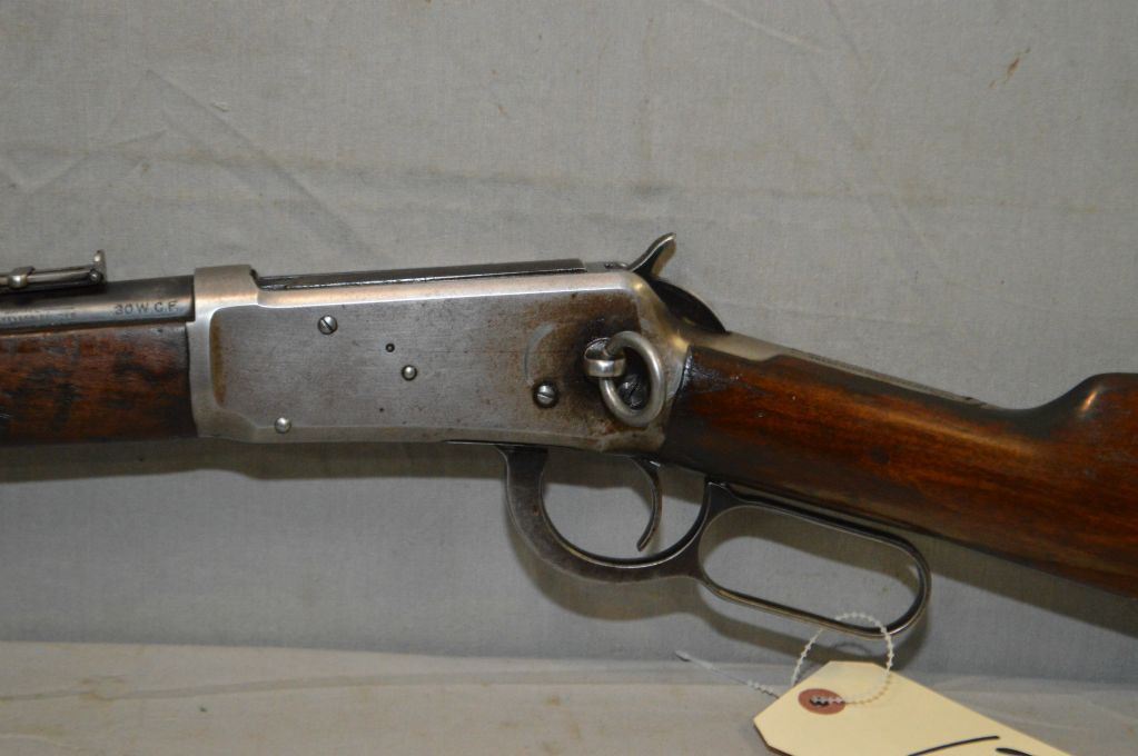 Winchester Model 1894 .30 WCF Cal Lever Action Saddle Ring Carbine w/20" bbl [ blued finish starting to fade, receiver almost grey, barrel sights, good revarnished wood w/few marks, carbine metal butt plate, Circa 1921 ] Ser # 886364