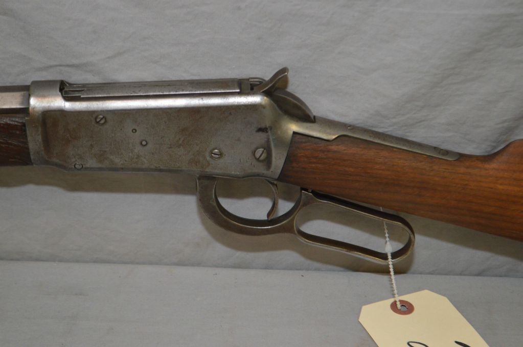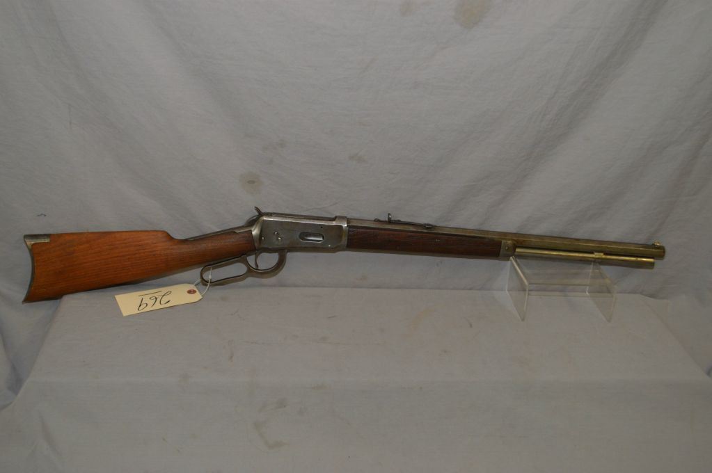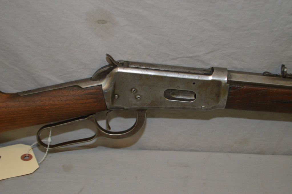 Winchester Model 1894 .32 - 40 Cal Lever Action Rifle w/ barrel shortened to 21 3/4" octagon full mag [ traces of blue, faded to grey in most areas, barrel sights, sanded butt stock w/metal crescent butt plate, well weathered and worn forewood, Circa 1899 ] Ser # 176196