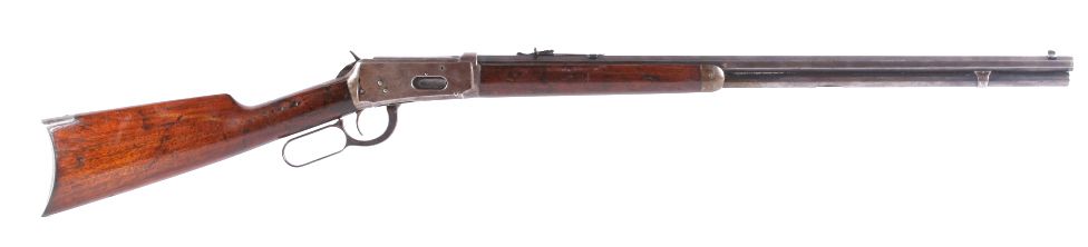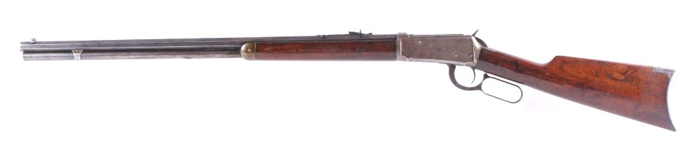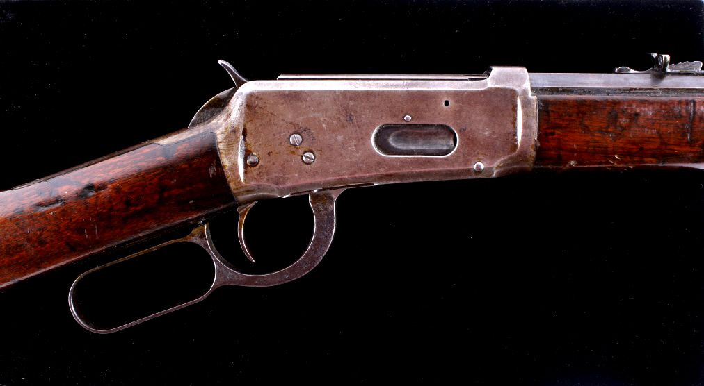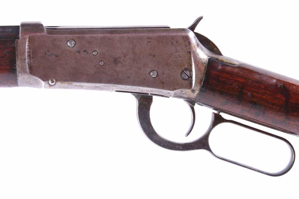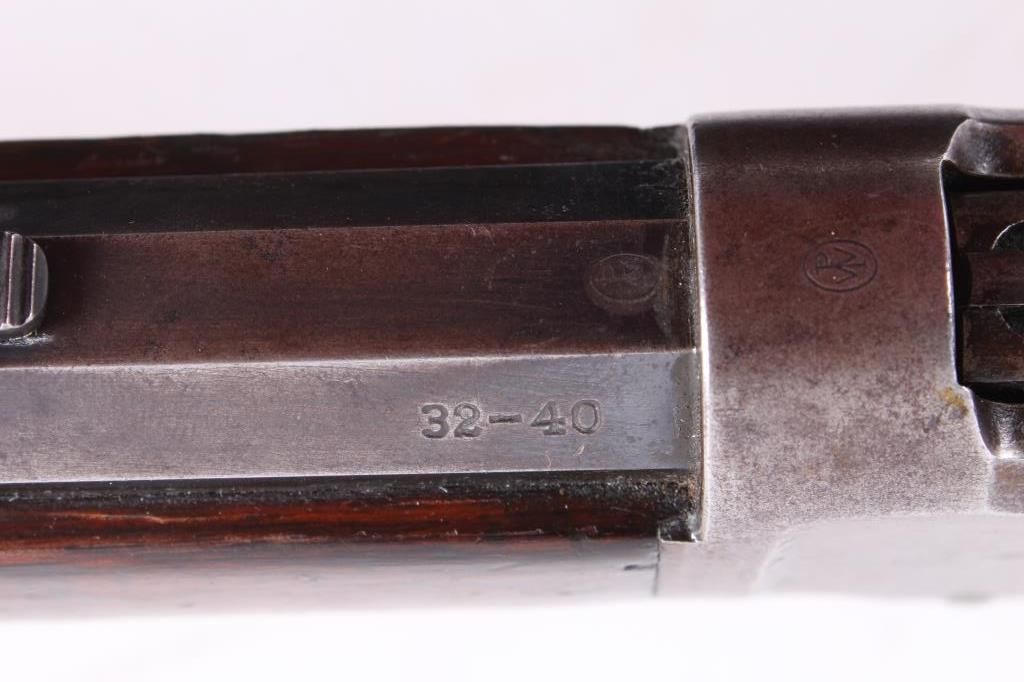 This is a Winchester Repeating Arms Company Model 1894 rifle. The rifle has a rare .32-40 caliber, octagon barrel, and adjustable sights. The rifle has a serial number of 560092 and was manufactured in 1910. Metal crescent butt plate. RARE caliber.