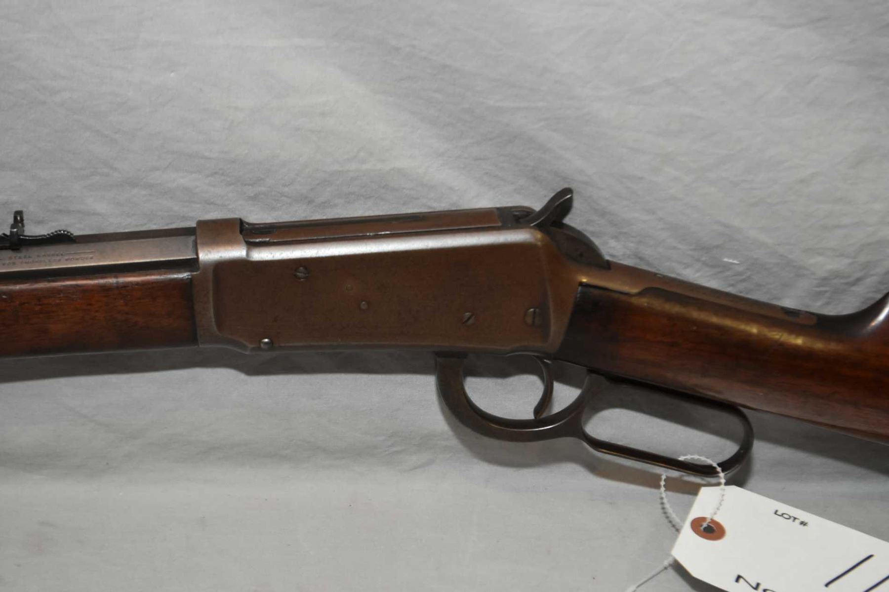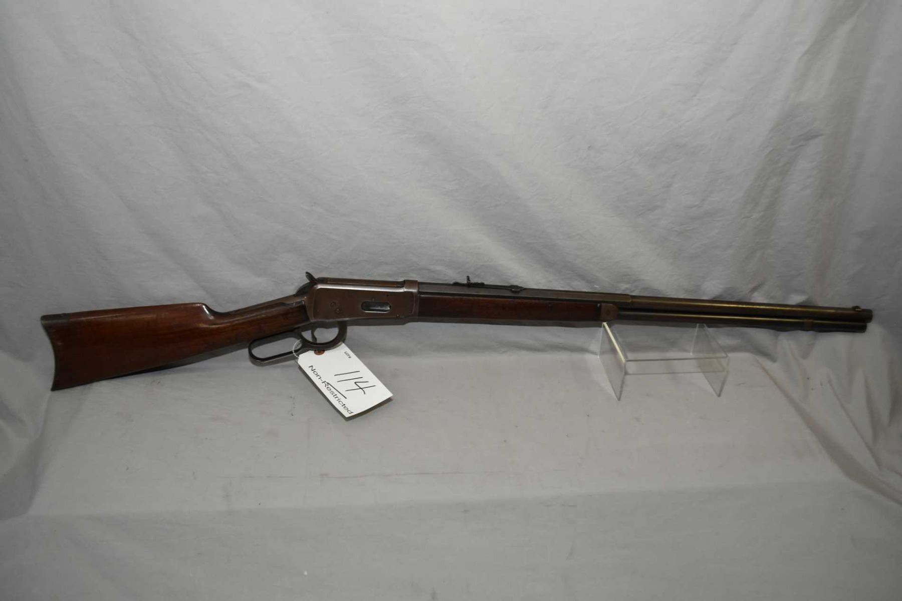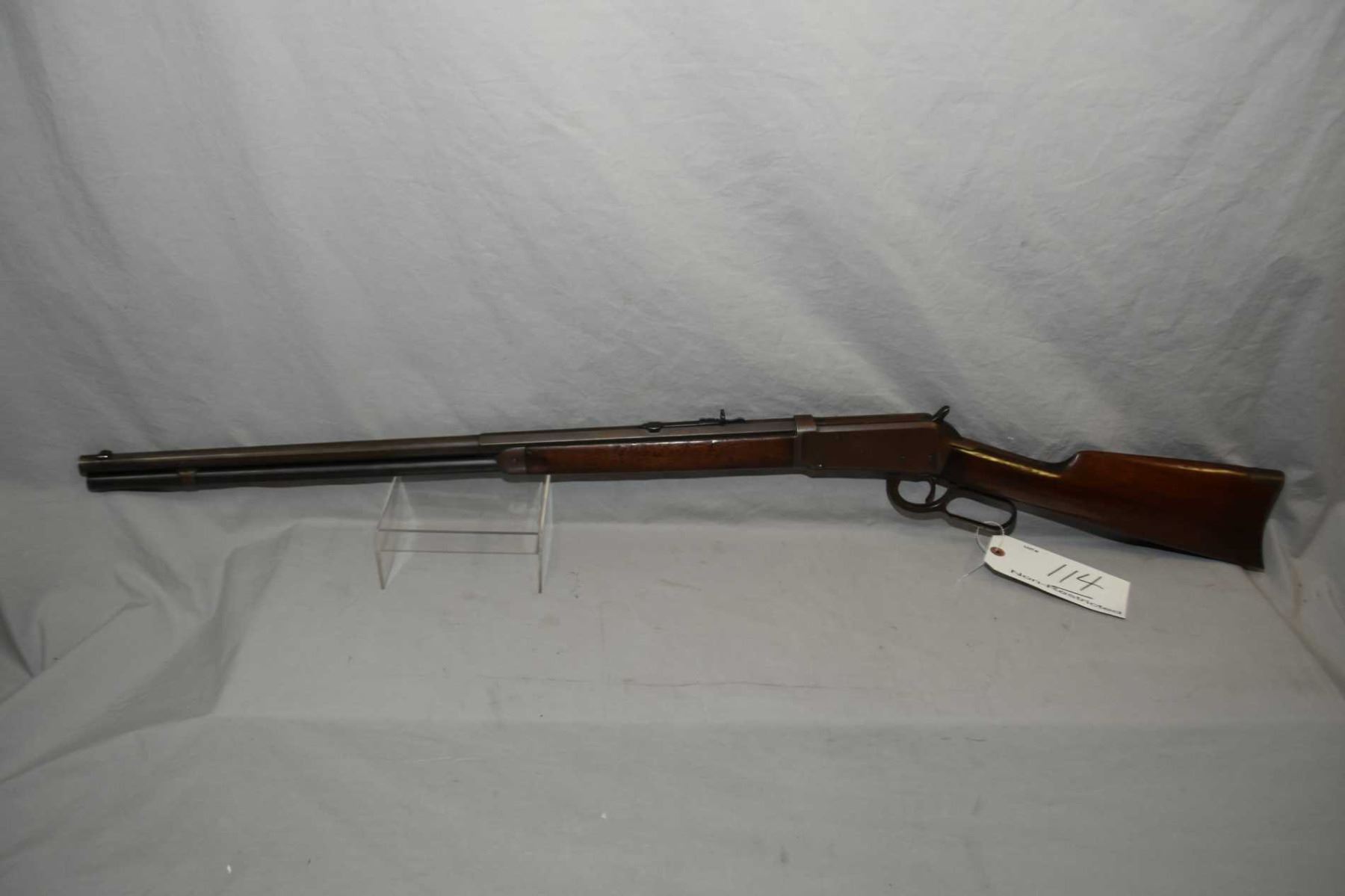 Winchester Model 1894 .32 Win Spec Cal Lever Action Rifle w/ 26" half round half octagon bbl [ fading blue finish, turning brown, barrel sights, wood with normal bumps and bruises, pitted metal crescent butt plate, Circa 1905 ] Ser # 332549