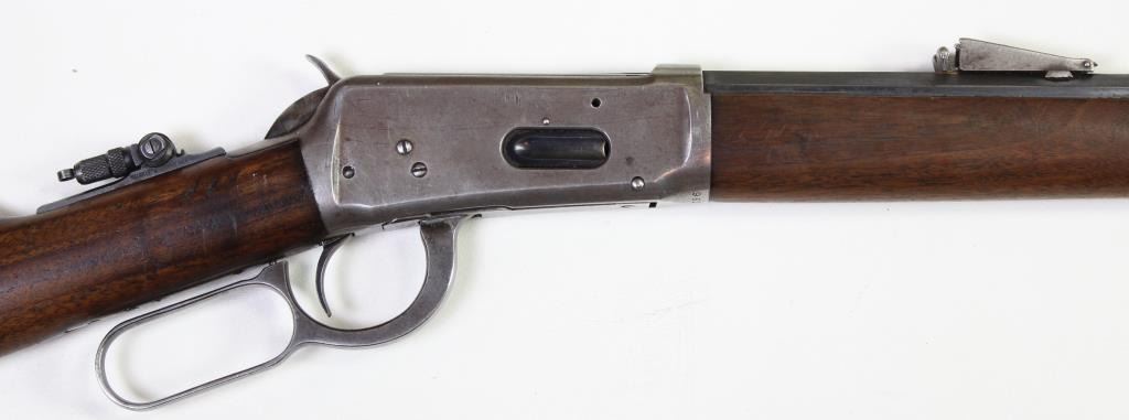 Winchester Model 1894 .32 Win. Special SN 962952 standard 26" octagon barrel with full mag, straight grain walnut stocks, rear tang sight with crescent buttplate. Rifle remains very good untouch condition, barrel and mag tube show 75-80% blue, originalstandard 26" octagon barrel with full mag, straight grain walnut stocks, rear tang sight with crescent buttplate. Rifle remains very good untouch condition, barrel and mag tube show 75-80% blue, original 94 smokeless sight