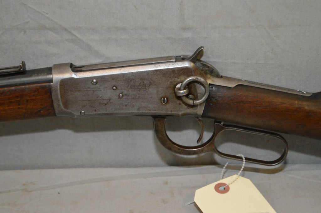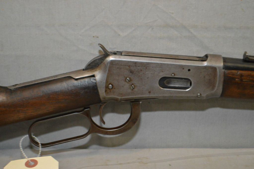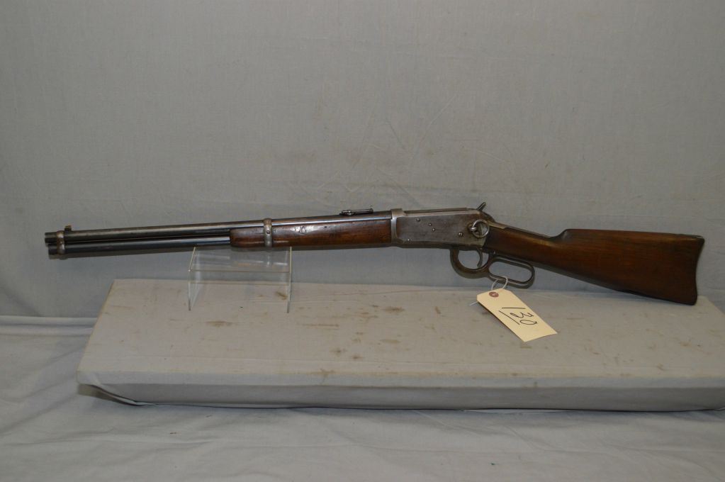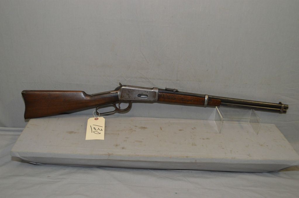 Winchester Model 1894 .38 - 55 Cal Lever Action Saddle Ring Carbine w/ 20" bbl [ fading blue finish, barrel sights, butt stock appears sanded down, with metal carbine butt plate, good forewood, Circa Unknown ] As Serial Number Removed