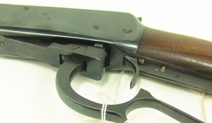 Beautiful, 30-30 caliber carbine with 20" barrel, modified shotgun style butt plate, adjustable rear sights, and full blued finish. Very good condition. S/N 1786405. Ca. post 1925. 37" *Purchase of this firearm requires FFL paperwork/delivery.