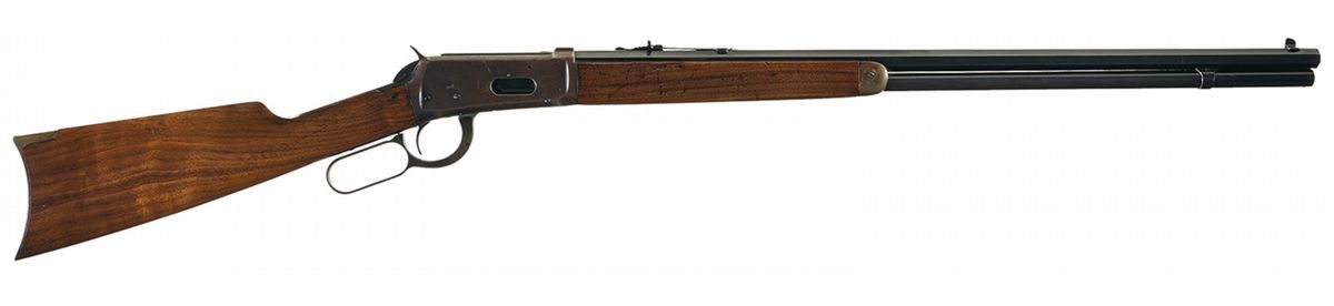 Manufactured in 1925. Blade front and adjustable sporting rear sights with full length magazine tube. Standard two-line barrel address/patent date on the upper left barrel flat ahead of the rear sight and the two-line nickel steel/smokeless powder marking followed by "32 W.S." next to the rear sight. The Winchester oval proof is marked on the top barrel flat and receiver at the breech. The three-line model, maker, trademark information on the upper tang and the serial number is marked on the front bottom of the receiver. Blue finish with casehardened lever, forend cap and buttplate, and mounted with a smooth walnut forearm with steel end cap and straight grip stock with a crescent buttplate.