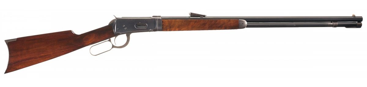 Manufactured in 1903. Blade front sight and adjustable "Smokeless 32 W.S. M.94" rear sight. The top barrel flat is marked with the two line address/patent date ahead of the rear sight and the left upper rear has the two line nickel steel smokeless powder marking. The top flat at the breech is marked with the Winchester oval proof followed by "32 W.S.". The oval proof is also on the top of the receiver at the breech. The upper tang is marked with the three line model, maker trademark marking and the serial number is on the front bottom of the frame. Blue finish with casehardened hammer and lever, full magazine tube and mounted with a smooth varnished walnut forearm and straight grip stock with a casehardened crescent steel buttplate.