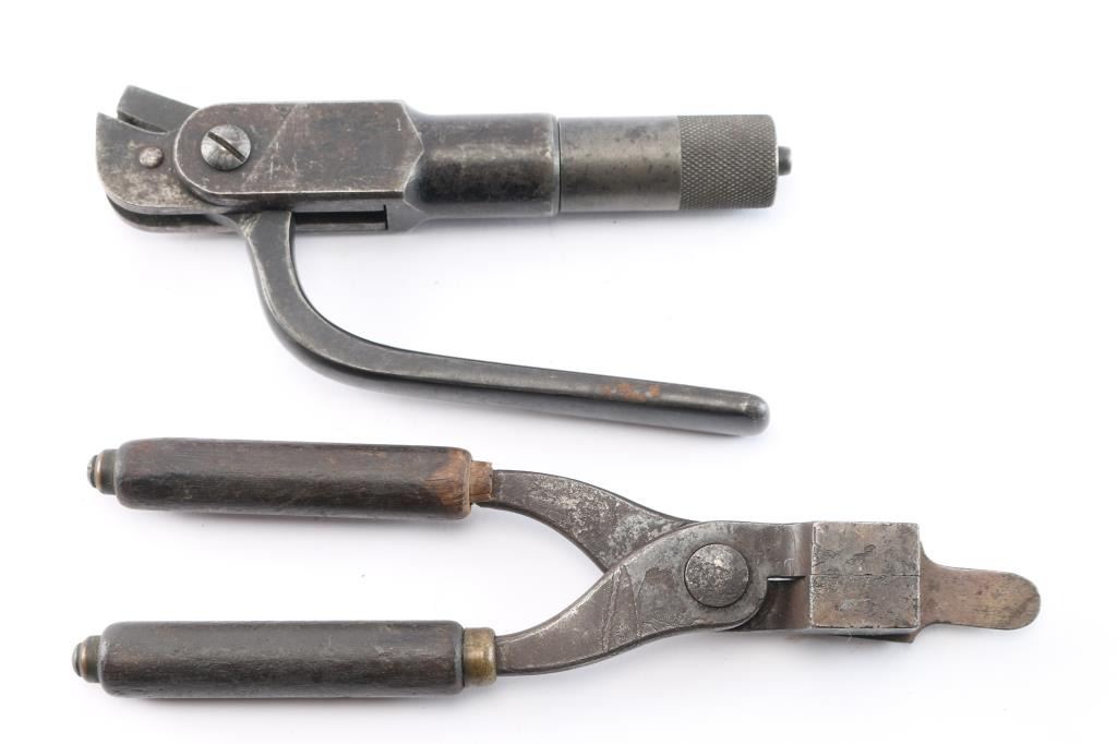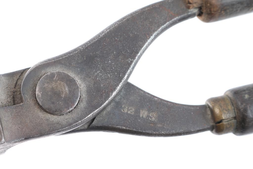 In 32 Winchester special caliber with matched caliber Winchester mold. Tool is good to very good with 50% plus toning blue and normal age. Well marked. The mold shows some blue going to patina and is good overall with pristine cavity. A nice set to display with 94 rifle or carbine.