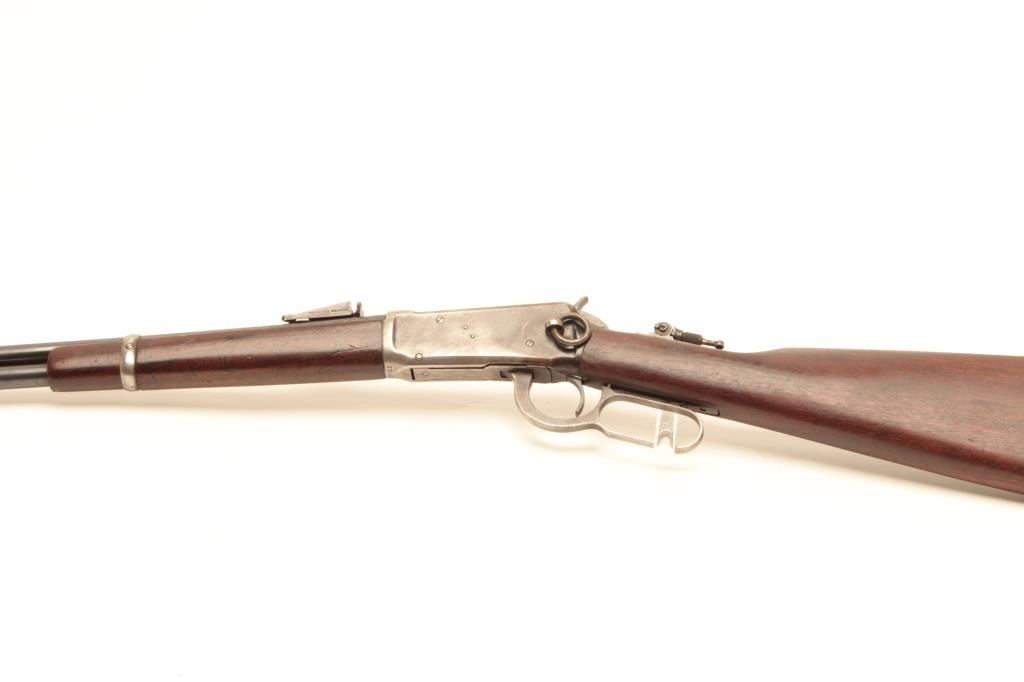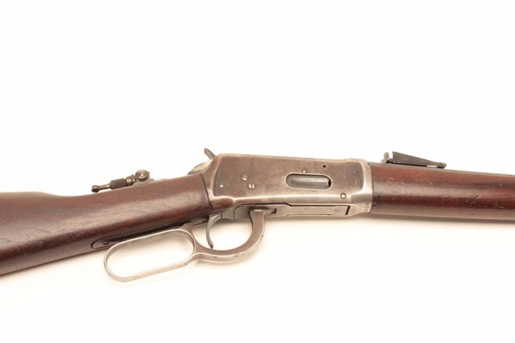 Winchester Model 1894 SRC, .32 W.S. caliber with proper .32 W.S.-marked rear sight and Lyman tang sight, S/N 923842, in overall very good + condition. (Modern). Est.: $600-$1,200.