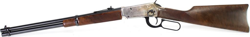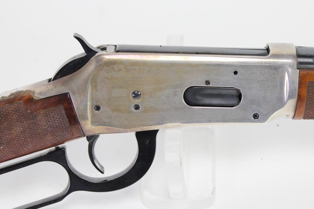 Winchester Model 1894 Wells Fargo 30-30 SN WFC09045 Commemorative saddle ring carbine, 20" barrel, checkered stocks, Wells Fargo and Company in medallion stock 1852-1977, blued barrel and mag tube with 70% , engraved receiver nickel plated, stagecoach sSN WFC09045 Commemorative saddle ring carbine, 20" barrel, checkered stocks, Wells Fargo and Company in medallion stock 1852-1977, blued barrel and mag tube with 70% , engraved receiver nickel plated,