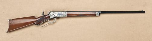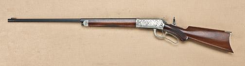 Winchester Model 1894 lever action special order rifle, .30-30 caliber, 26” half round/half octagon barrel, button magazine, checkered pistol grip stocks, rifle butt, factory letter state under remarks: “A new receiver sent out; receiver plated and engraved by customer; received in warehouse March 4, 1904; shipped March 4, 1904. On June 25th 1904, receiver returned and the factory made the following rifle: .30 caliber, 1/2 octagon barrel, plain trigger, half magazine, plain pistol gri checkered, butt plate and finger lever plated in factory; Lyman rear cup and combination front sight, shipped June 27, 1904”. The rifle retains approx. 90-95% original blue on barrel, just some slight beginning erosion and natural aging; the frame, buttplate, lever and forend cap show 95% soft original nickel finish; the stocks are very good plus to near fine with 90% original varnish and just a few minor bumps, bruises, and alight scratches; the hammer shows considerable case hardening, loading gate shows most of its original blue, the markings sharp, the action crisp, the interior near excellent. A very interesting and important Winchester which shows beautiful scroll engraving which many have been accomplished by th