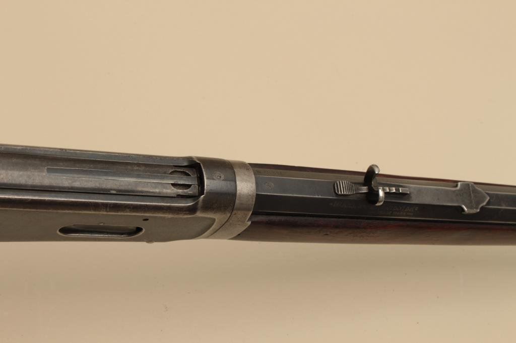 Serial #1069115. The rifle is in very good overall condition with a 26” half octagon to round barrel. The barrel and full-length magazine retain the majority of their thinning blue finish with high point edge wear and loss of finish on the underside of the magazine. The receiver shows significant old, flaking blue with some muted case hardening still evident in the hammer. The smooth wood stocks show moderate wear with dents and compressions from use and carry. The bore is good, the action crisp and markings are sharp on this desirable model 94 with some special order features circa 1929 (C+R). Est.: $1,200-$2,400.