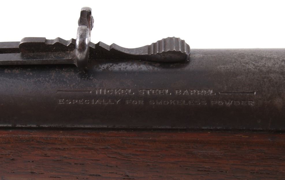 Included in this lot is a very fine condition Winchester Model 1895 in rare .30-06 caliber with correct 24” barrel, serial number 84857. According to the Winchester records housed at the Buffalo Bill Historical Center in Cody, Wyoming, this serial number indicates that this rifle was manufactured in 1913. The standard caliber for the Model 1895 was .30-40 Krag making a rifle chambered in .30-06 a scarce caliber. This nearly 107 year old example displays deep blue covering nearly all of the barrel with only normal light ageing. The receiver displays an attractive aged blue mixing naturally with an uncleaned gray/brown patina. There is fine blue on the bolt (receiver top) and on the box magazine and lever. The front sight is a Marble #57 blade/bead (and so marked) along with a buckhorn rear sight. All the correct Winchester markings on the barrel and upper tang are sharp and clear. The caliber marking on the barrel side is correctly stamped “.30 GOVT. 1906.” The stock is in excellent condition. The forend with correct factory ebony inlay schnable tip is equally excellent. The forend wood shows a darker color indicating that it may have spent a good deal of time in a leather saddle scabbard. The action on this example is tight and the bore is excellent, bright and has very sharp rifling. This is a scarce caliber Model 1895 that has seen normal use, but was exceptionally well maintained. The 1895 was another Jonathan Browning designed action that is unique among lever action rifles in that it has a box magazine ahead of the trigger designed to hold five cartridges. Because the loaded rounds in the magazine are stacked, pointed bullets could be utilized offering much better terminal ballistics than the blunt, flat nose bullets required for tubular magazines in which one cartridge is placed directly ahead of the previous with the bullet tip centered on the primer on the next shell. In this traditional kind of tubular magazine, a pointed bullet could detonate another round in the magazine when so loaded. Obviously, this is not the case with the box magazine of a Model 1895. Interestingly, the Model 1895 in several calibers accompanied Theodore Roosevelt on his famed year-long African Safari of 1909. At the time it was considered the most modern and powerful lever action rifle of its day. This is very fine example in a very scarce and desirable caliber. This firearm qualifies as a Curio & Relic, and requires FFL Transfer or NICS Background Check.