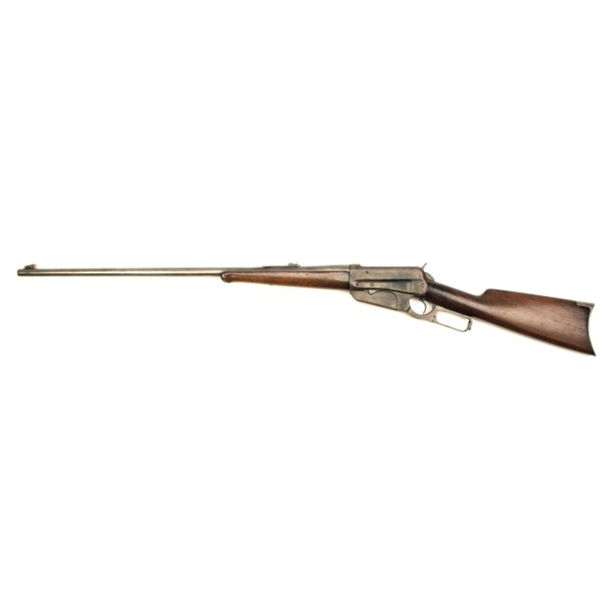 Winchester Model 1895 .303 cal. SN 62535 lever action rifle 28" round barrel, walnut stocks and crescent iron butt plate. Barrel and receiver silver gray overall patina, receiver with areas of moderate pin prick pitting, stocks with heavy old coat varnish. Good action and poor bore. Mfg'd 1910, FFL required.