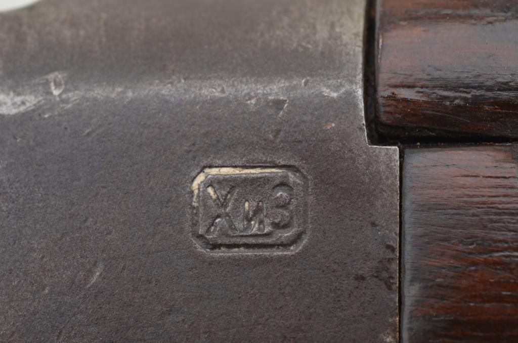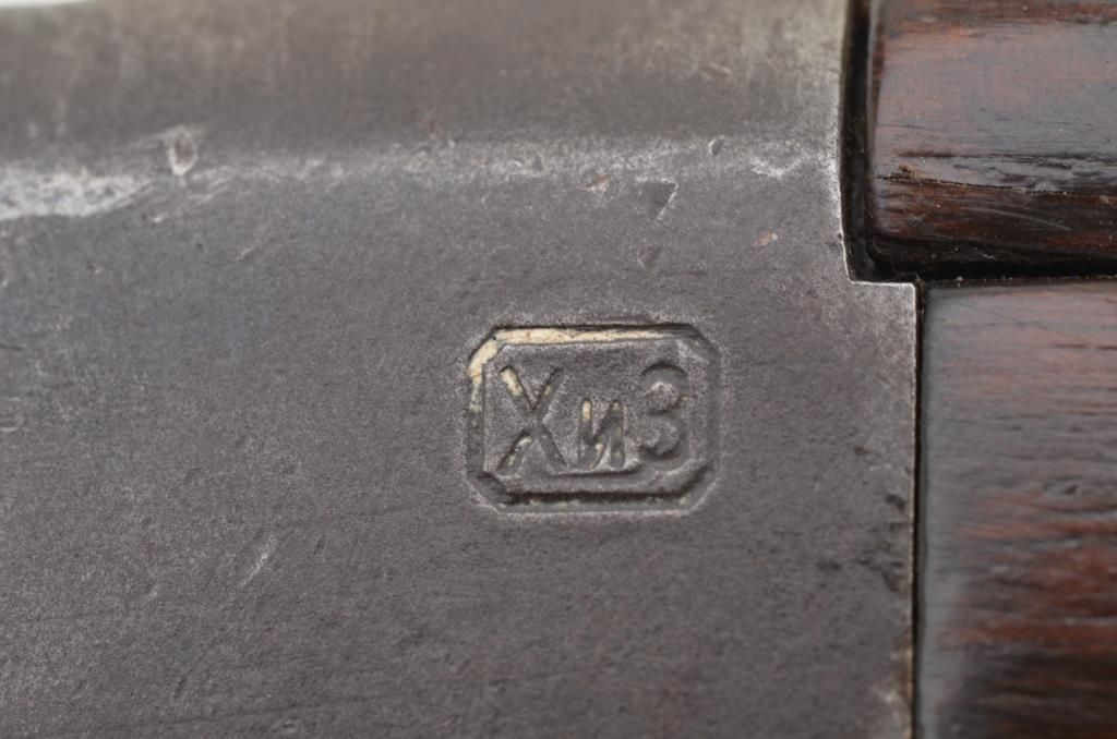 Winchester Model 1895 lever action Russian Model Musket, 7.62mm cal., 28” barrel, blue finish, bayonet lug, clip guides on top of receiver, wood stocks, sling swivels, #186810 in overall good condition showing a muted blue finish, fair bore, crisp action and markings; overall good wood displaying an old re-finish over scattered mars and dings from carry and storage. A total of almost 294,000 of these muskets were made on order for the Imperial Russian Government between 1915 and 1916; not many found in the U.S. and those that are, usually have returned from Russia and have suffered the extremes of hard service and climate in that part of the world; this piece is one of the better conditioned examples viewed by this cataloger in some time. From an old estate. Est.: $1,200-$1,800.