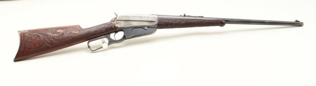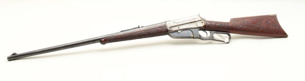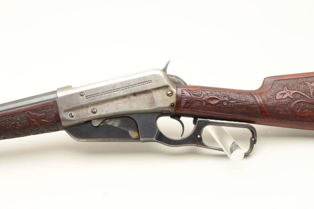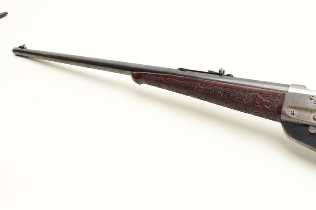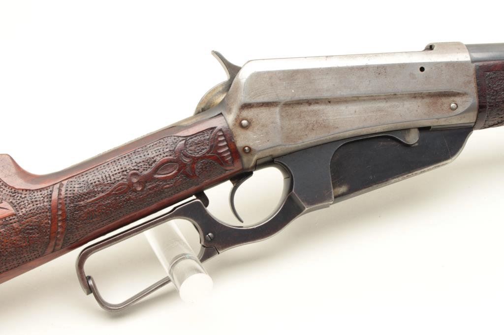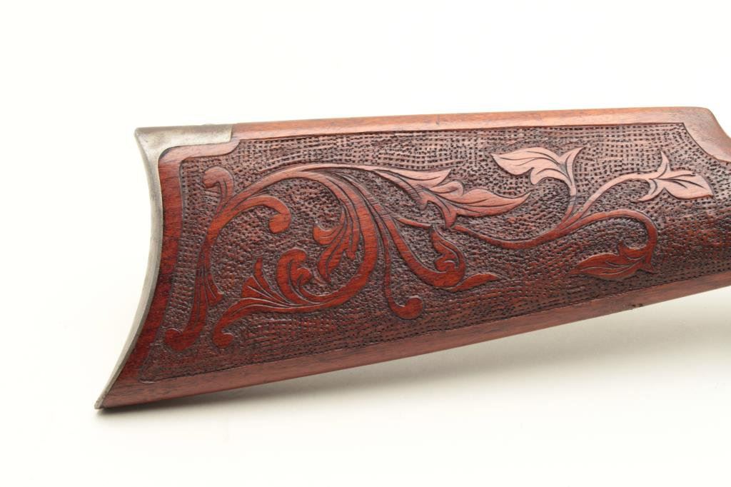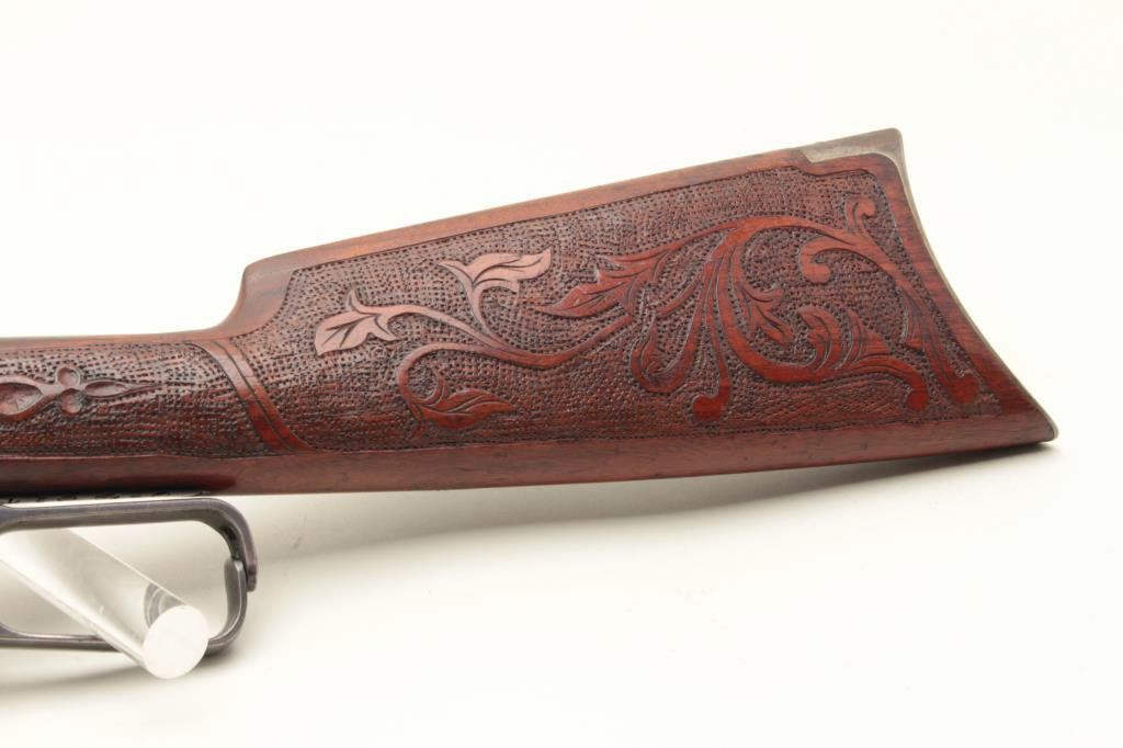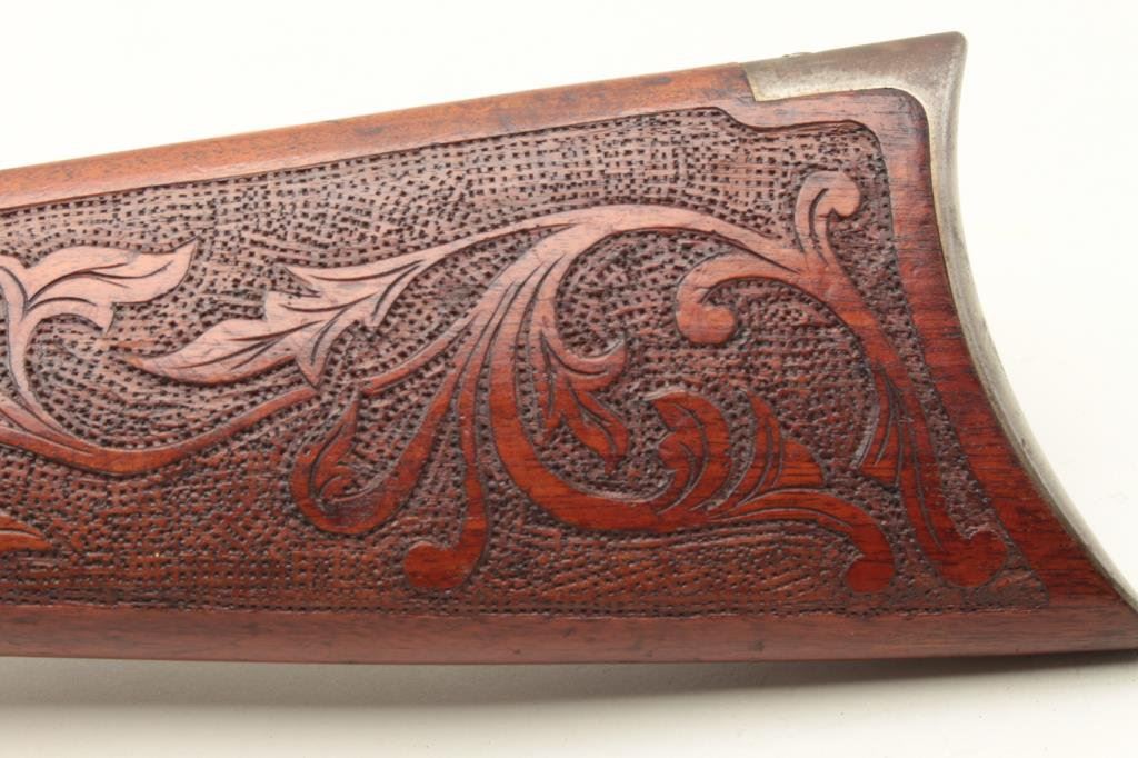 caliber, 24” round barrel, blued finish, custom carved wood stocks, S/N 84769, in overall good to very good condition with considerable blued finish on barrel, grey patina to receiver, crisp action and markings, somewhat rough bore, very good customized stocks. (C&R). Est.: $700-$1,400.