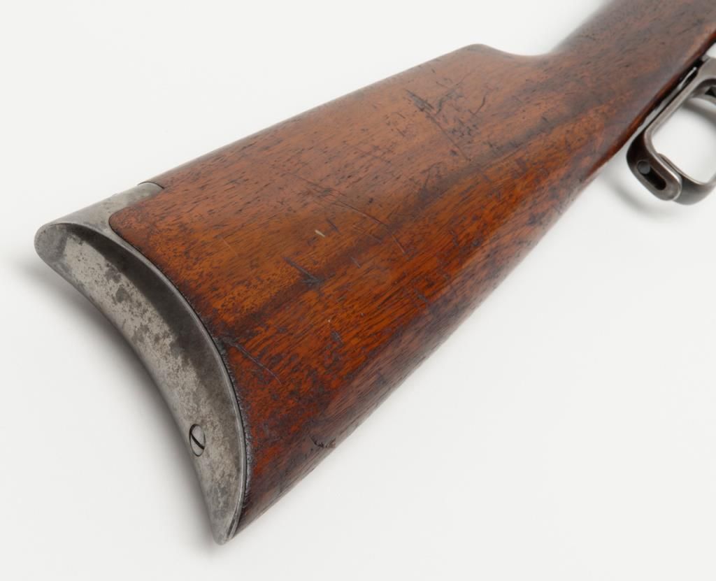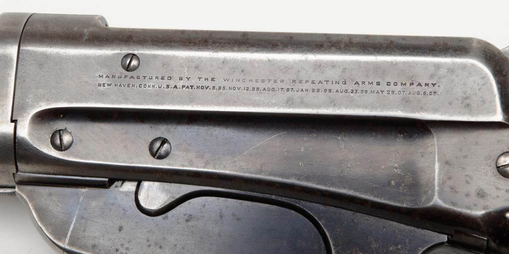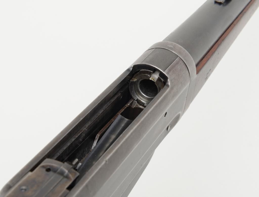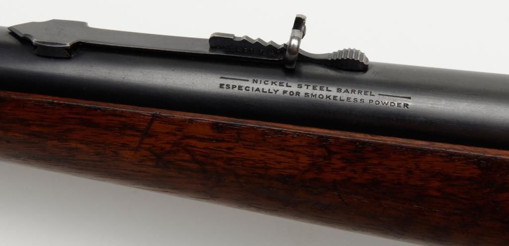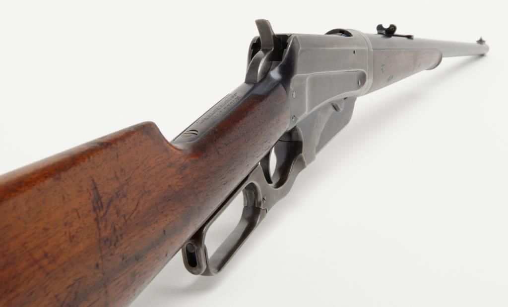 Winchester Model 1895 lever action takedown rifle, .35 W.C.F. cal., 24” round barrel, blue finish, wood stocks, #64672 in overall near fine condition showing the majority of its original blue finish on the barrel and considerable original matchingblue finish on the receiver and lever; crisp action, near fine bore, sharp markings, very good + butt stock and forend. (C&R/PPT). Est.: $1,250-$2,500.