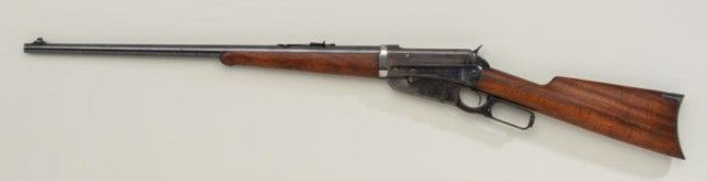 Winchester Model 1895 takedown lever action rifle in desirable .405 WCF cal., 24” round barrel, blue finish, wood stocks, #418664. This gun is in overall very good condition and with a little careful cleaning and oiling may improve to near fine; considerable original blue finish on barrel and portions of original blue on protected areas of receiver, very good bore, crisp action, sharp markings and very good wood stocks withebony insert in schnabel portion of fore end. Est.: $1,250-$2,500.