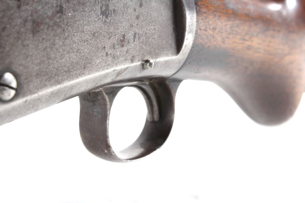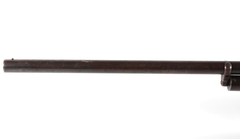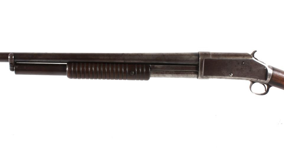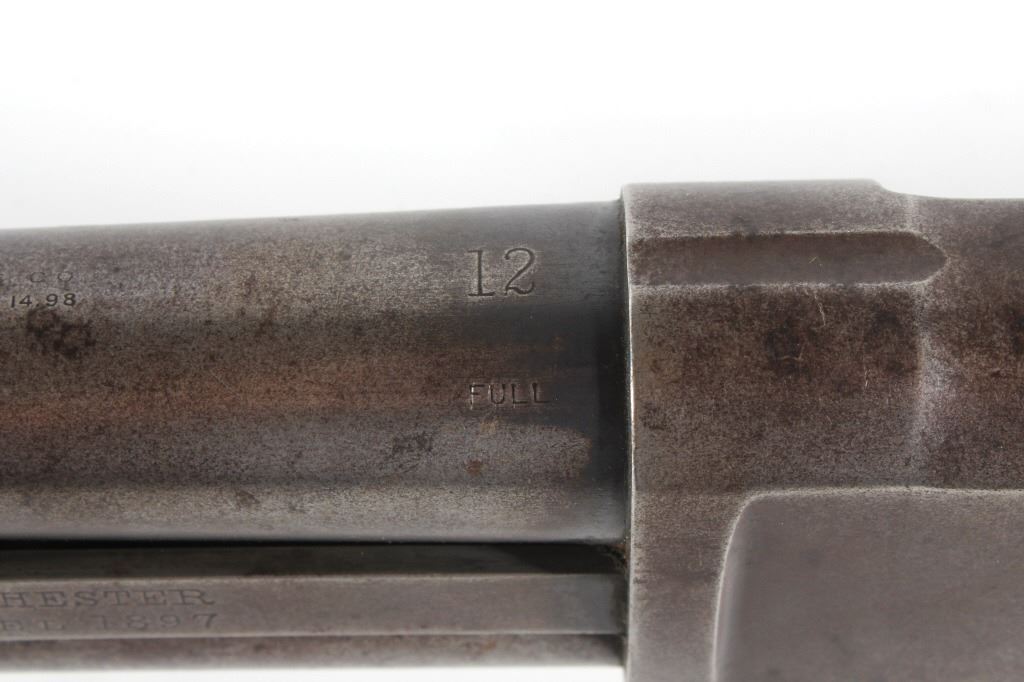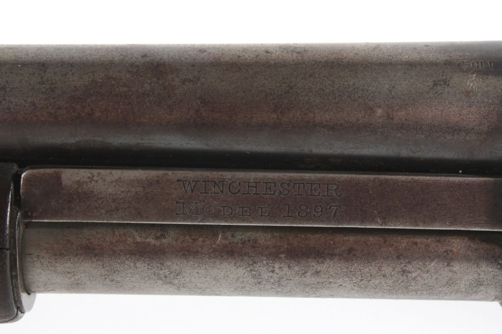 The lot features an original Winchester Model 1897 slide action shotgun. This example shows a 30 inch round barrel chambered in 12 GA and a serial number of 62715, being manufactured in 1898. This Antique shotgun holds five rounds in the magazine. The Winchester Model 1897 was designed by John Browning. The Model 1897 is an external hammer shotgun lacking a trigger disconnector. This means that the user can hold the trigger down while cycling the shotgun and once the action is returned to battery the shotgun fires. The firearm itself is classified as a slide action pump shotgun. It was the first truly successful pump-action shotgun produced. The 1897 introduced a "take down" design, where the barrel could be taken off, a standard in pump shotguns made today. Over time, "The model 97 became the most popular shotgun on the American market and established a standard of performance by which other kinds and makes of shotguns were judged, including the most expensive imported guns. The left side of the slide is marked "Model 1897 - Winchester." Serial Number: 62715. This firearm qualifies as a an Antique and requires NO FFL Transfer or NICS Background Check.