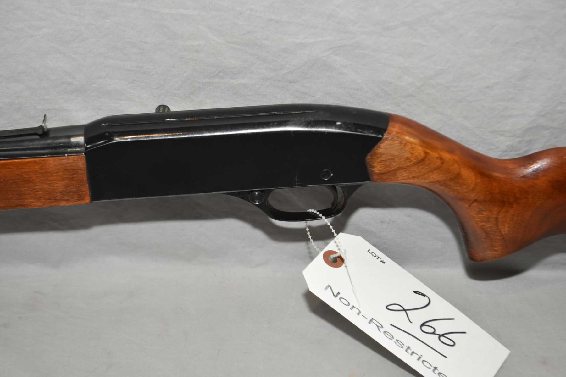Winchester Model 190 .22 LR Cal Tube Fed Semi Auto Rifle w 20 3/4" bbl [ blued finish, starting to fade with some marks, good pistol grip stock and forend, Winchester butt plate, Note : Barrel sights missing the lift ] Ser # B855222