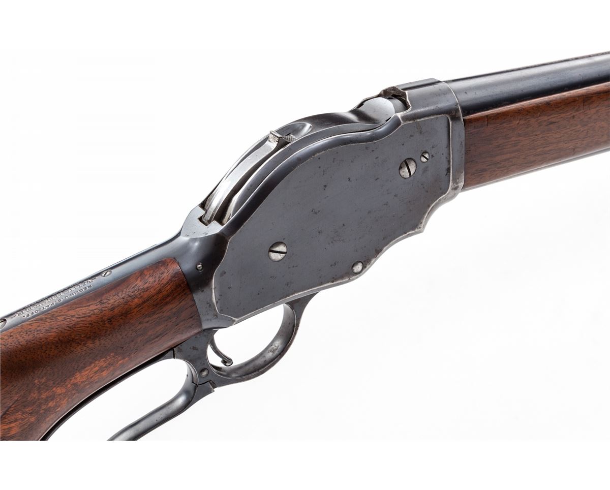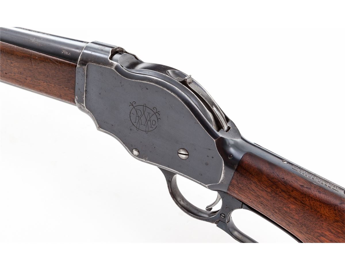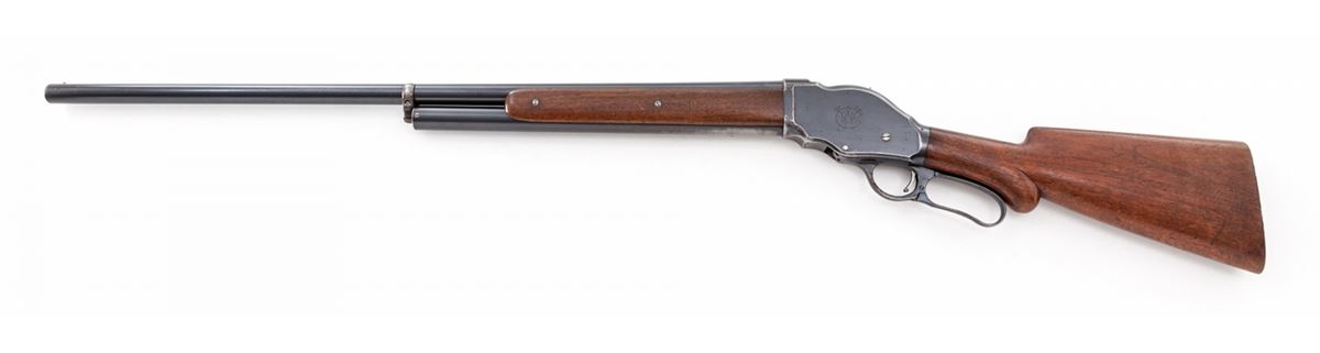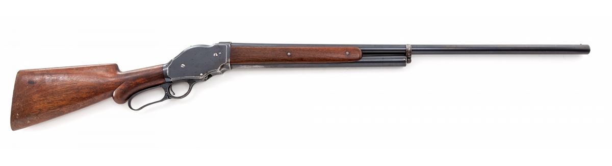 Winchester Model 1901 Lever Action Shotgun, #74101, 10 ga., 32'' barrel choked Full, blue finish, walnut stock, with checkered steel buttplate. Mfg'd 1909. Condition is very good to fine retaining approx. 90% original blue. Stock with light scuffs and scratches. Action is crisp, bore is bright. Est.: $800-$1,200. (C&R)