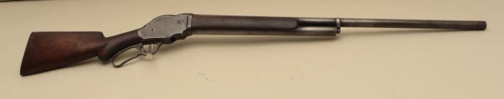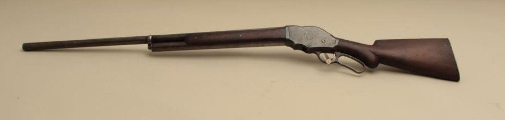 wood stocks, checkered steel butt plate, S/N 59580, in overall good to very good condition with a grey patina to metal surfaces, good action and markings, bore shows some scattered erosion, wood is overall very good; butt plate shows some surface rust that should clean. (C&R). Est.: $500-1,000.