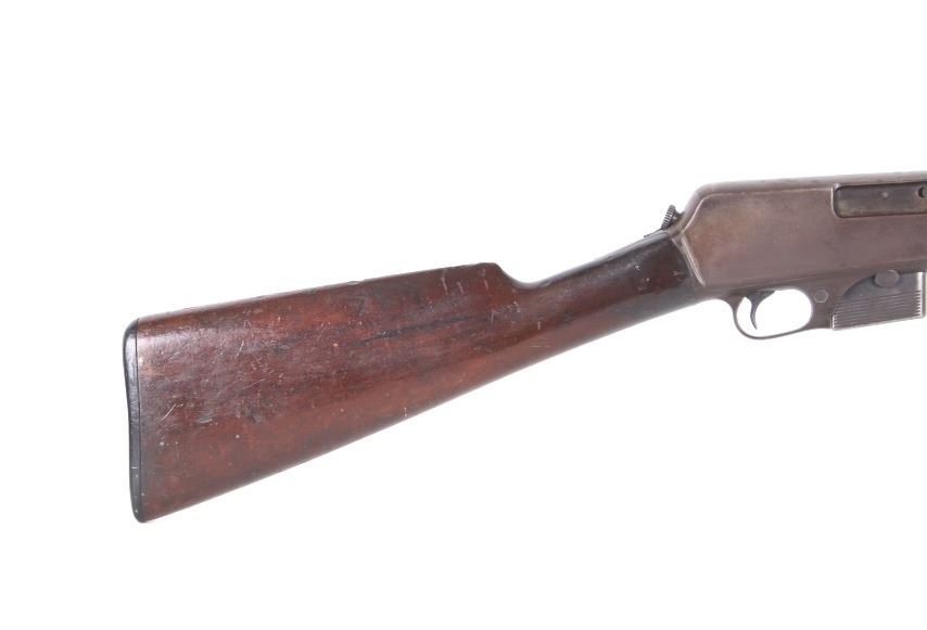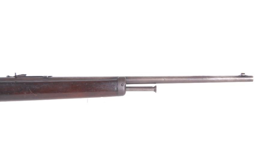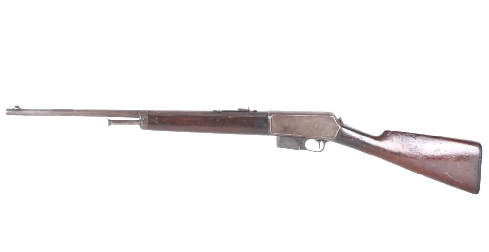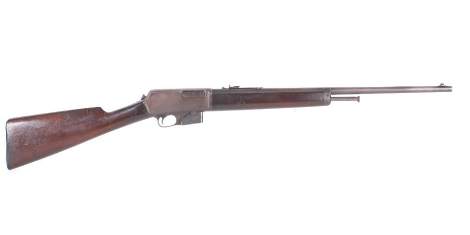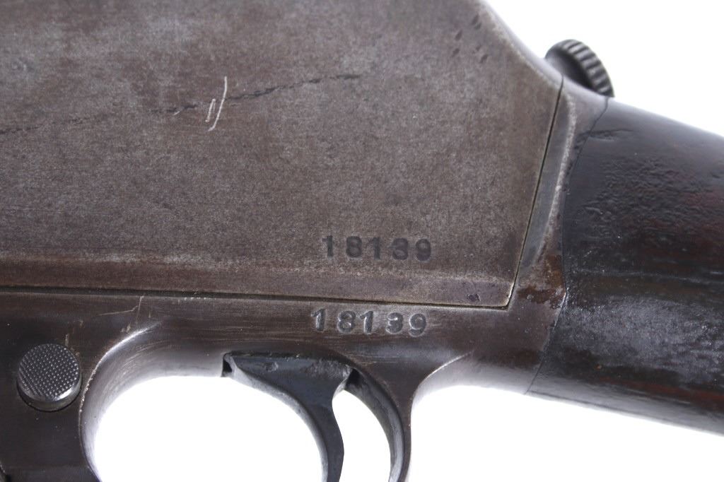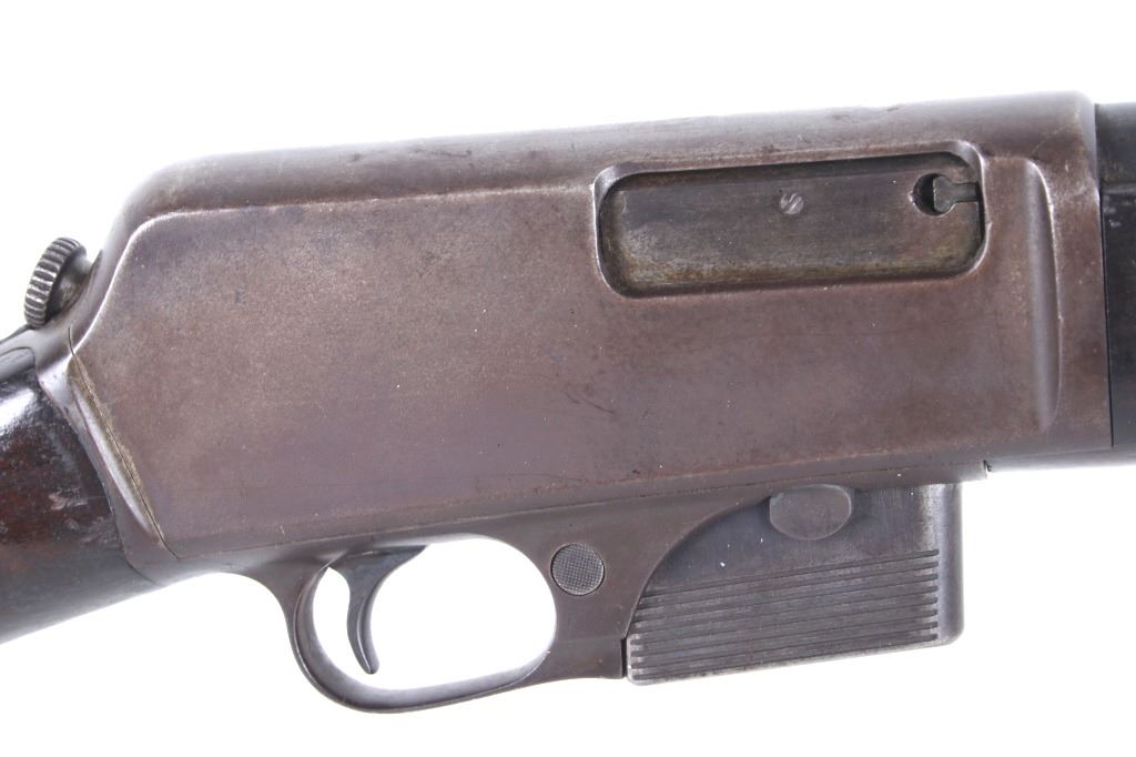 For your consideration is a Winchester Model 1905 .32 caliber semi-automatic rifle. This rifle utilizes a 22" round blue'd barrel with dovetailed blade front sight and adjustable rear elevation sight. The barrel is marked "Manufactured by The Winchester Repeating Arms Co. New Haven Conn. U.S.A. Self Loading Model 1905 Pat. Aug. 27. Dec. 10. 1901. Feb. 25. 1902. Feb. 17. Dec. 22. 1903. - 32 Cal." The straight grain hardwood stock and fore grip is in good condition showing minor loss to finish associated with use. Manufacture date of 1906. Serial Number: 18139. This firearm qualifies as a Curio & Relic Long Gun, and requires FFL Transfer or NICS Background Check.