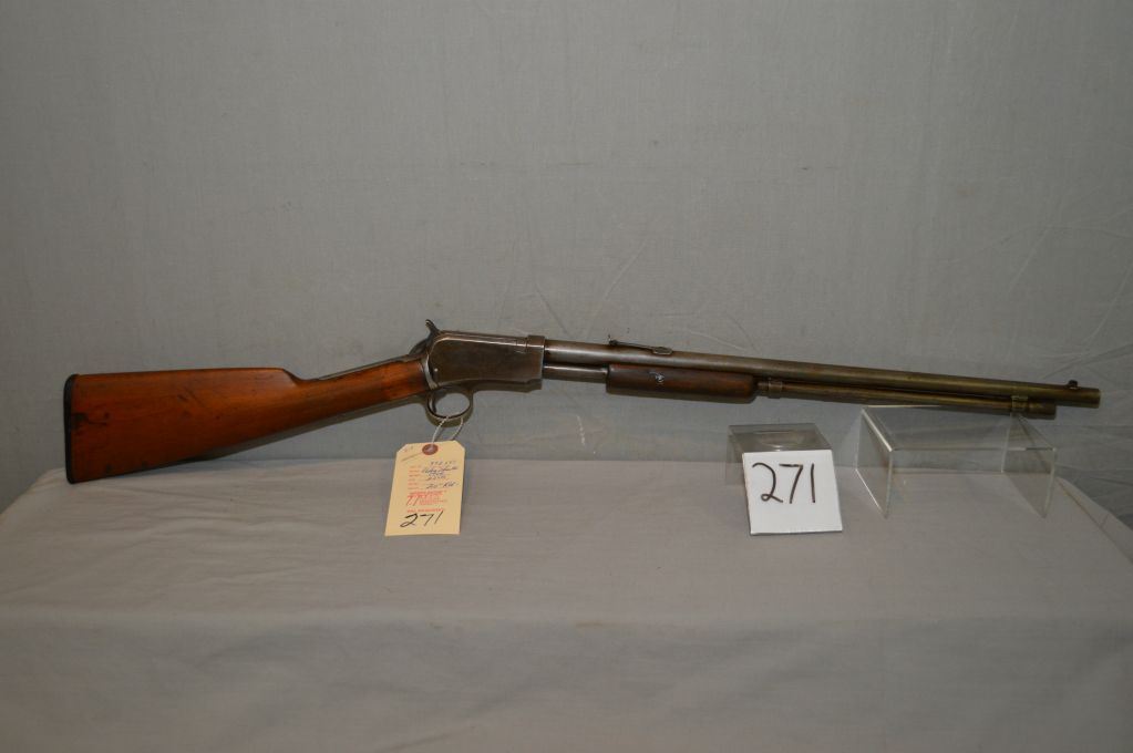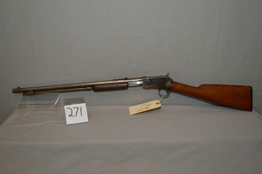 Winchester Model 1906 .22 LR cal Tube Fed Pump Action Rifle w/ 20" rnd bbl [ traces of blue finish faded to grey, fair walnut stock & forend w/ worn plate, Circa 1913 ] Sr # 372651
