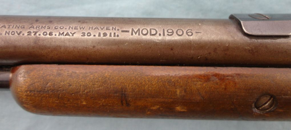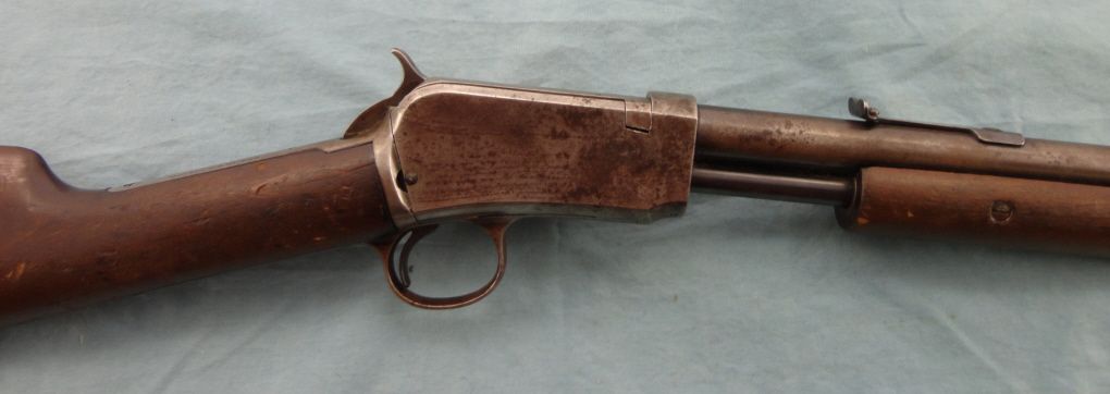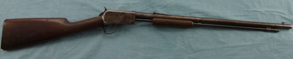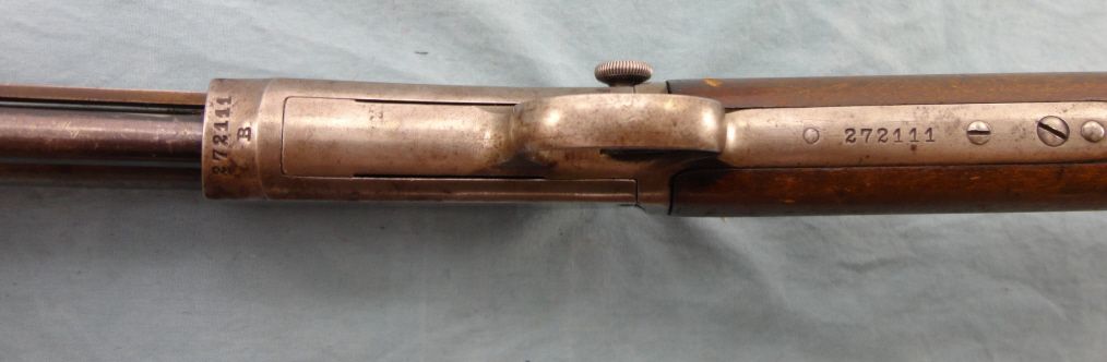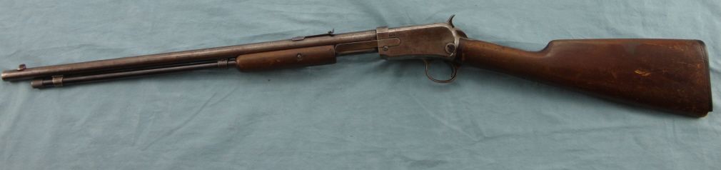 #272111; 22 cal. Std. Config. Metal parts faded to grey. Action functions fine. Toe of butt pad is broken.