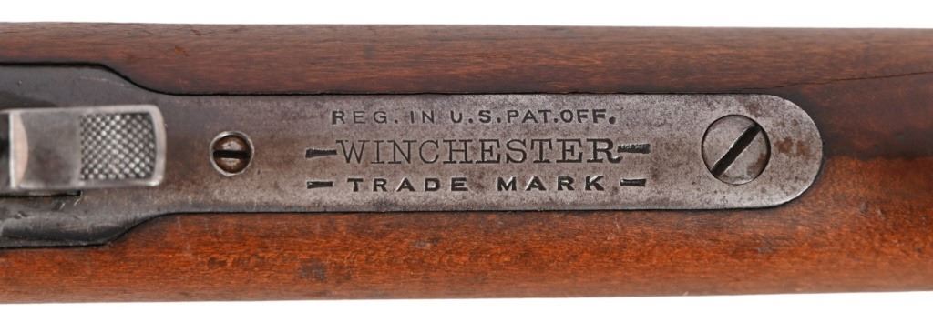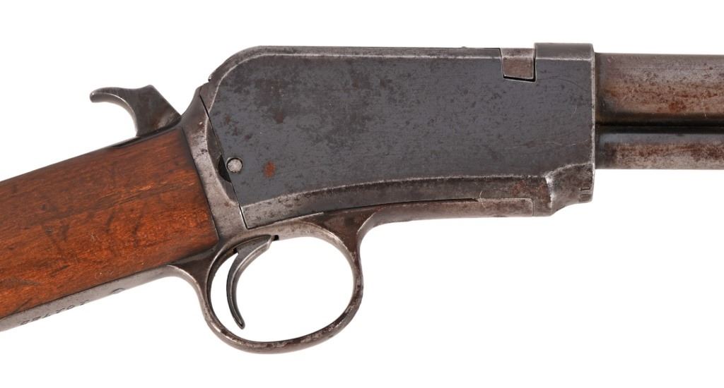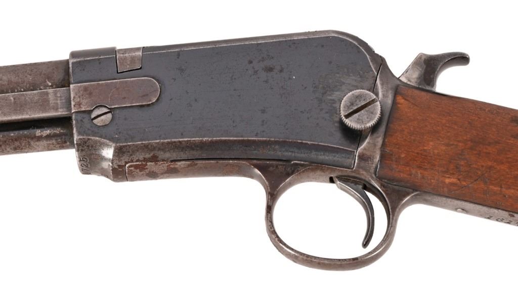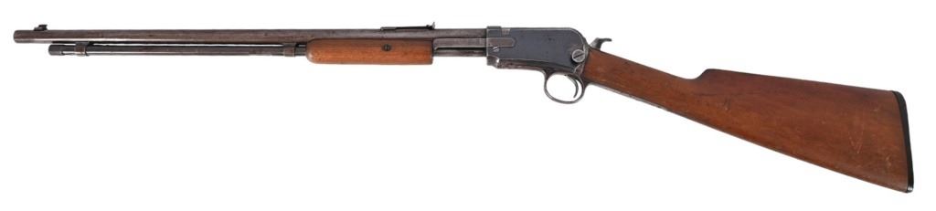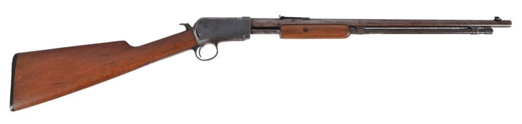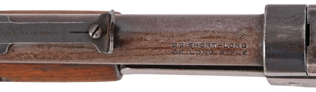 S/N 161725. Round 20" barrel, chambered in .22 short/long/long rifle, with original blue finish and wood stocks. Action works well, bore is in decent condition. Modern.