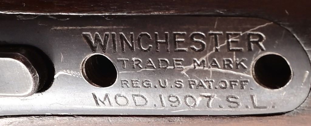 S/N 31445, manufactured 1912. Blue finish, 20" barrel. Crack through forestock. Missing tang screws. Good bore and action.